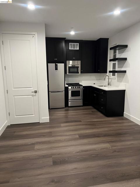 ADU with one bedroom, Kitchen, Bathroom and living area.