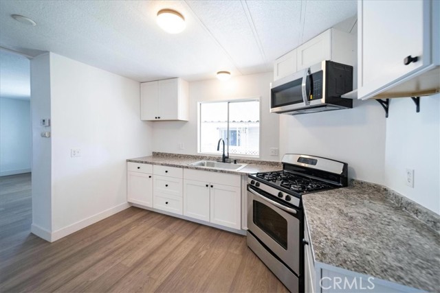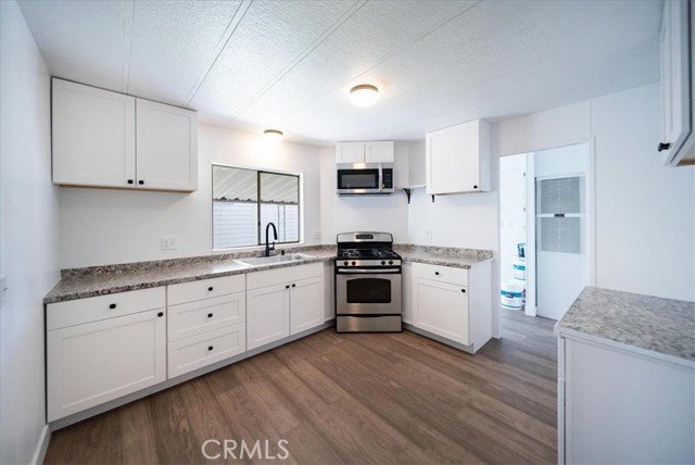 Discover the perfect family haven in this beautifully remodeled 4-bedroom, 2-bathroom manufactured home located in the vibrant all-age community of Arrowhead Estates. This rare gem boasts a reimagined floor plan that seamlessly blends modern aesthetics with functional living. Step into a stunning kitchen adorned with brand new countertops, chic cabinets, and high-end stainless steel appliances, including a gas range and microwave—ideal for culinary enthusiasts. The indoor laundry area, featuring convenient washer and dryer hookups, adds to the home's practicality. Nestled on a HUGE oversized corner lot, this property offers the rare advantage of ample outdoor space for family gatherings or gardening dreams. Enjoy affordable space rent while taking advantage of the community's fantastic clubhouse amenities, complete with a sparkling pool and a delightful children's playground. With easy freeway access, shopping, and dining just moments away, this home is not just a residence—it's a lifestyle waiting to be embraced. Don’t miss your chance to make this exceptional property your own!