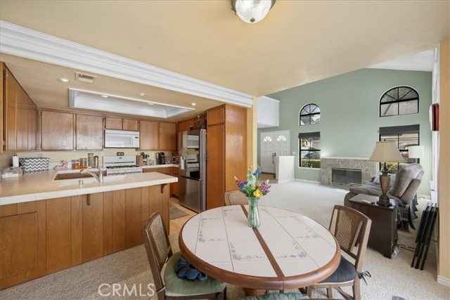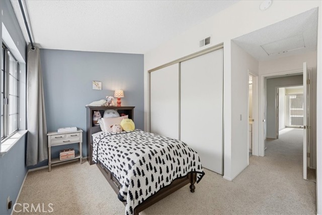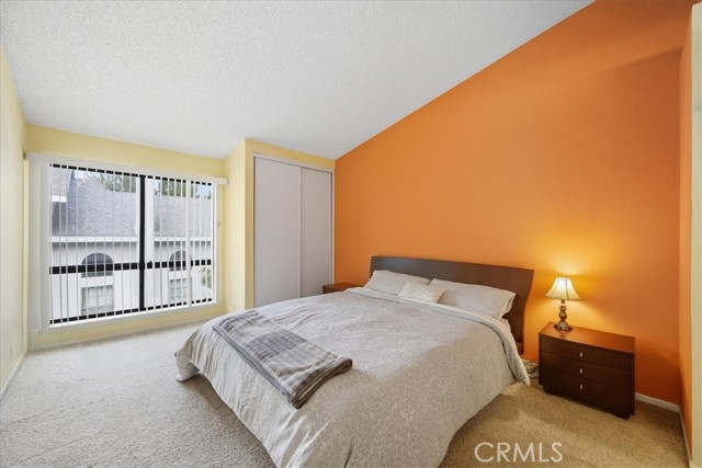 Two floor high-ceiling condominium located in a desirable Mission Viejo community. The property features an open living and dining area with abundant natural light from the highly placed bay windows, a functional kitchen, and two full suites. Both suites are upstairs, and the primary suite offers an enclosed bathroom, double sinks, and generous closet space. It has 2 closets and high ceilings with open areas above for storage or decorations. The second suite is oversized and designed to allow for multiple uses, including the potential to create a third bedroom with minor modifications. There are two windows and two identical closets. The floor plan offers flexibility for a variety of living arrangements, including multigenerational. The garage offers 2 car spots, and features cabinets and shelving for additional storage and organization. The garage has the water heater and laundry, with electric outlets for the dryer. This amazing home has new air conditioner and furnace units from 2021, with other upgrades to the furnace in 2025. The garage door springs were replaced in 2025. Also, the HOA repiped the water lines for all units in 2016. The HOA has plans to replace the roofing in all units in the coming months. The HOA offers parking security as well. The community is well-maintained and provides residents with access to amenities including landscaped common areas and a pool with spa, and barbeque. The pool area is currently being remodeled to update the aesthetics and to provide modern accessibility, including digital entry. The HOA also grants you access to the private Lake Mission Viejo, where you can enjoy a private beach, along with nearby lake-view restaurants and parks. The property is close to multiple parks and tranquil shopping centers. With its adaptable layout and central location, this residence provides both comfort and convenience in a sought-after area of South Orange County.