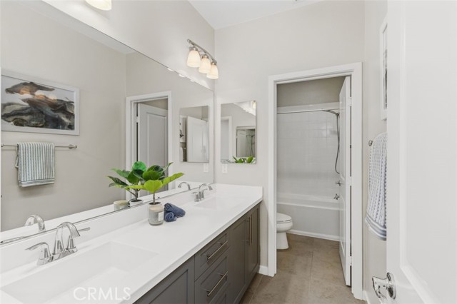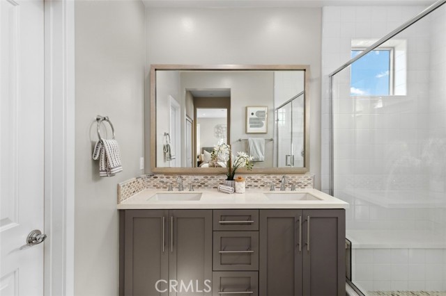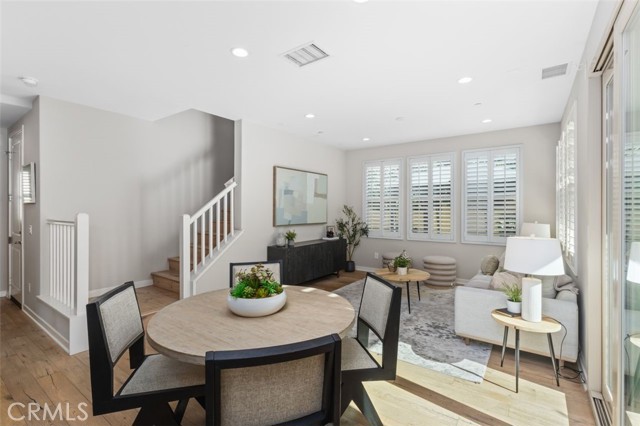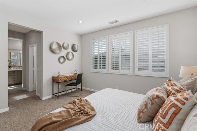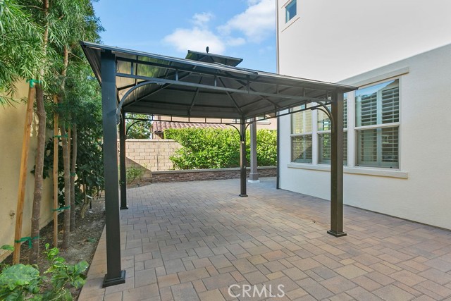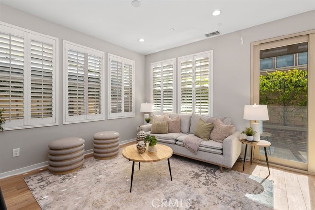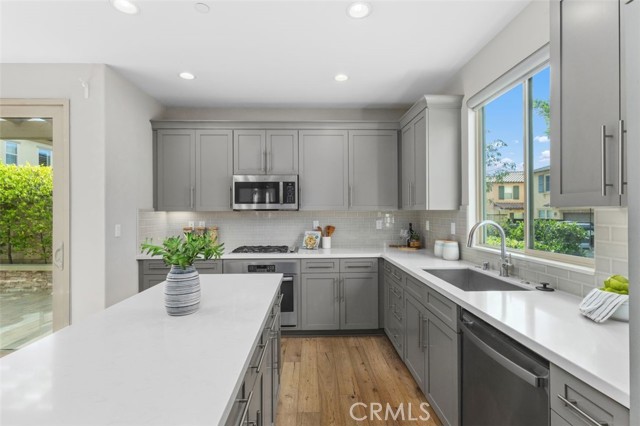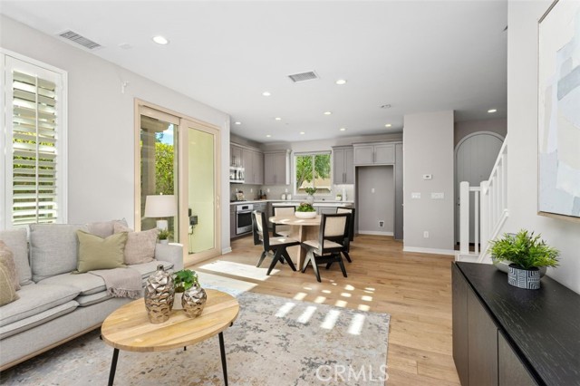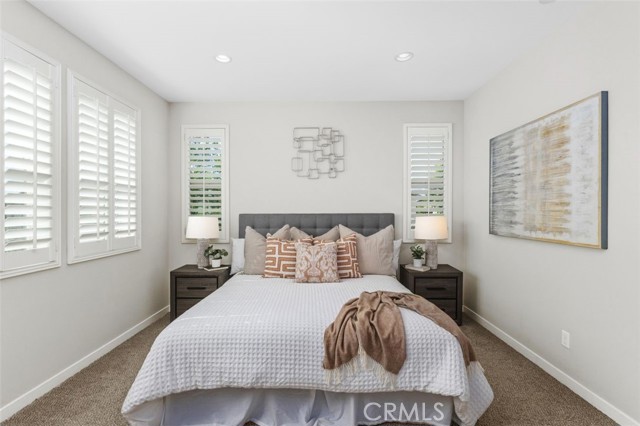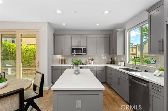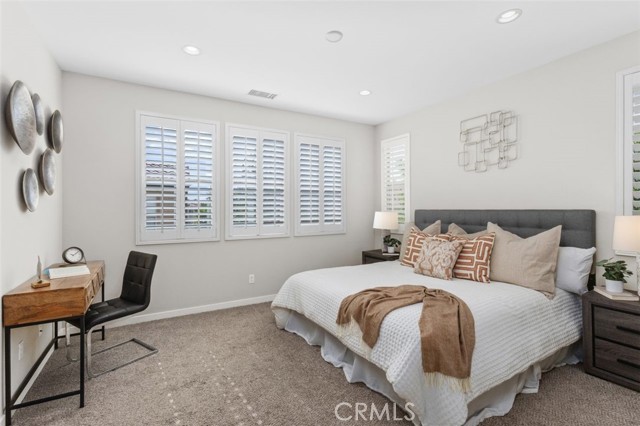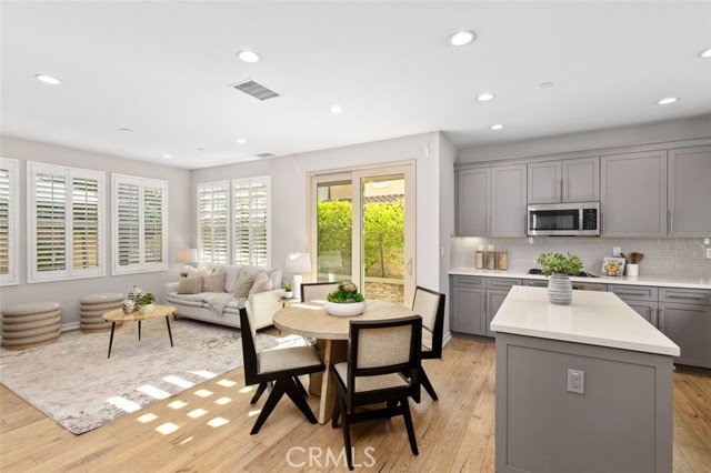 Step inside this Baker Ranch beauty where modern design meets everyday comfort, and discover a home that’s as stylish as it is practical. This newer detached corner lot home offers 4 bedrooms and 3 bathrooms with a thoughtfully designed floor plan that blends comfort, functionality, and modern style. Step through the charming arched front door into a bright, open-concept main level that connects the living, dining, and kitchen areas seamlessly. Gorgeous French oak-styled wood floors set the tone for a warm and inviting space, while large windows and a sliding glass door flood the home with natural light, complemented by custom plantation shutters throughout. The kitchen is a true showstopper with a generous island, upgraded modern backsplash, trendy cabinetry, and a pantry—perfect for both everyday living and entertaining. Adjacent to the kitchen, the main level includes a versatile bedroom or office next to a full bathroom with a sleek glass shower, offering flexibility for guests or a home workspace. Direct access to the oversized two-car garage with storage and cabinets adds convenience. Upstairs, two spacious bedrooms share a full bathroom featuring upgraded tile with a modern design. The well-appointed laundry room with cabinets and a sink makes daily chores easy. On the opposite side, the expansive primary suite enjoys abundant natural light and dual closets, including a walk-in. The luxurious primary bath boasts dual sinks, an oversized glass shower, and a private water closet. Outdoor living is equally impressive. A large wrap-around patio with a permanent gazebo creates multiple areas for dining, lounging, and entertaining. A side gate offers direct community access, while a unique garage door opening to the patio, enhances functionality. Living in Baker Ranch means resort-style amenities at your fingertips: 7 parks, 3 private pool facilities including The Vista Swim Club, The Grove Pool, and The Arbors Pool, along with tennis courts, hiking and fitness trails, and resident programs. With upgraded finishes throughout, including French oak–styled flooring, modern tile, and a stylish kitchen, plus a low tax rate, no Mello Roos, and low HOA, this home is not just beautiful; it’s a smart buy in one of Orange County’s most desirable communities.
