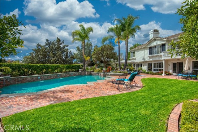 Welcome to 28 Riviera, a beautiful 5 bedroom 4.5 bathroom home situated at the end of a cul-de-sac on over a half acre within the guarded gates of Coto de Caza. The minute you enter this wonderful home you are welcomed by a very light and bright formal living room with soaring two-story ceilings and hardwood floors. Gourmet kitchen with center island, built-in gas range cooktop & range hood, double ovens, microwave, trash compactor and so much more! The kitchen opens to the family room with a brick fireplace, built-in entertainment center and bar. Upstairs the master suite spans the entire back length of the house with a private retreat sitting area, fireplace and balcony. Master bath boasts dual sinks, vanity area, soaking tub and walk-in shower. One-of-a-kind backyard features covered patio area, private pool and spa, built-in BBQ, fire pit, large grass area and gorgeous hill top views. Located right around the corner from the Coto de Caza Golf & Racquet Club.