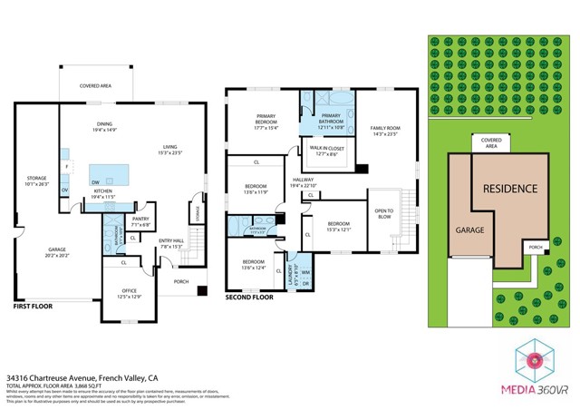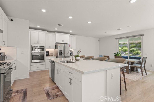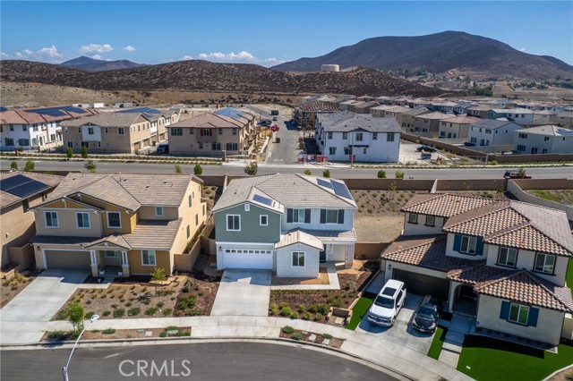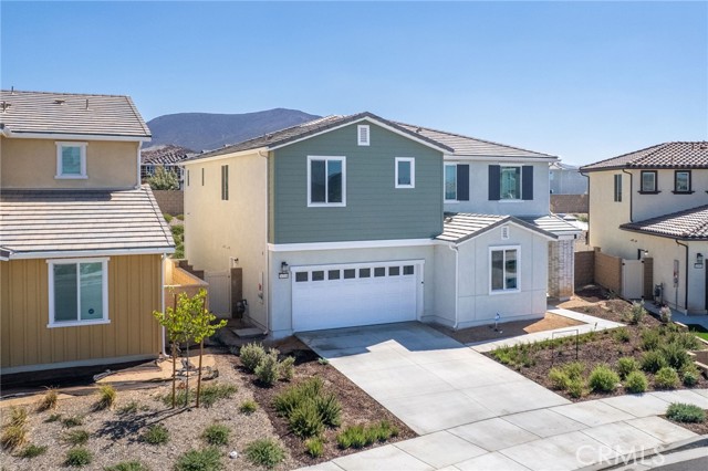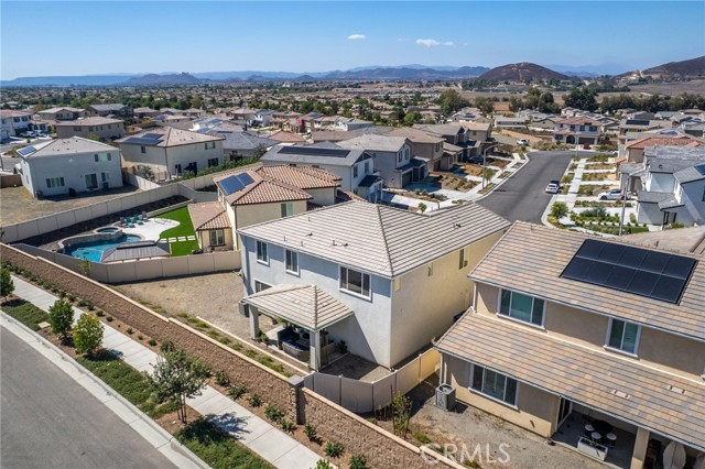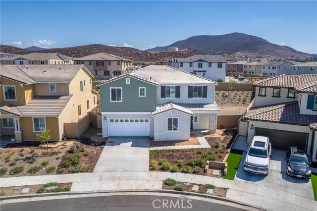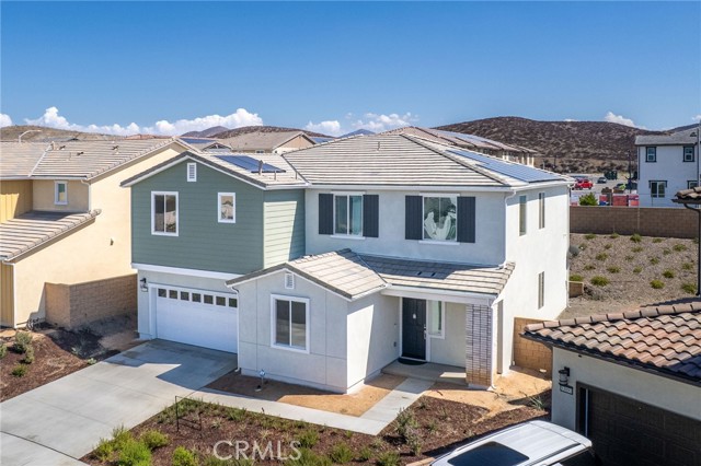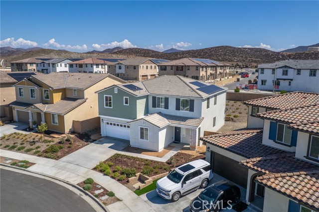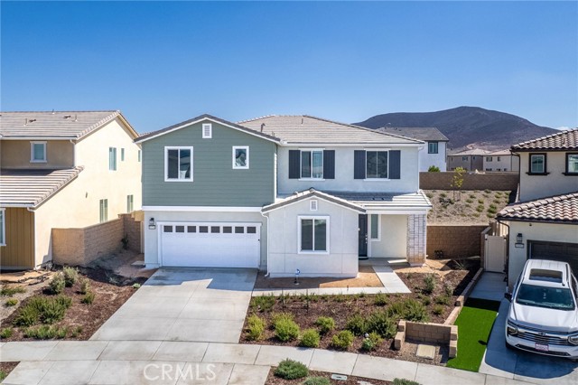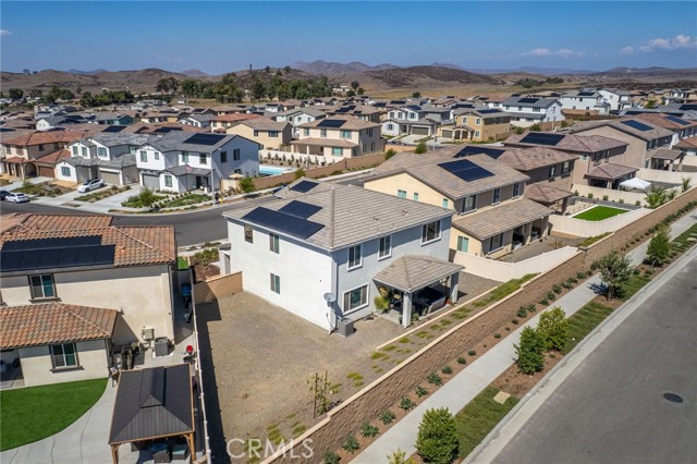 Also known as 34316 Pink Place this is a stunning new construction completed in 2023 with only one owner. Located in the desirable Viola at Siena community, this Plan 11 residence offers the perfect balance of modern design, functionality, and comfort. This expansive two-story home features 5 bedrooms, 3 bathrooms, and a spacious 3-car tandem garage. The inviting front porch entry leads to a thoughtful floor plan designed for today’s lifestyle. The first floor includes a private bedroom and full bath, ideal for visiting guests or extended family. The heart of the home showcases an open-concept great room, dining area, and chef’s kitchen with a large island—all seamlessly connected to the covered outdoor living space, perfect for entertaining and indoor/outdoor living. Upstairs is designed for connection and relaxation, offering a large loft, a tech space, and three secondary bedrooms that share a generous bath. The luxurious owner’s suite is filled with natural light and features a spa-inspired bath with soaking tub, separate walk-in shower, and an oversized walk-in closet. Thoughtful design upgrades elevate the home, including hard surface flooring in the main living areas downstairs, quartz kitchen countertops with full tile backsplash, a slide-in range, and a wall oven with built-in microwave. Energy efficiency is top of mind with paid-off solar panels, offering long-term savings and sustainability. This home is move-in ready and located in the heart of French Valley, close to award-winning schools, shopping, dining, and parks. With its blend of modern finishes, functional spaces, and community charm.