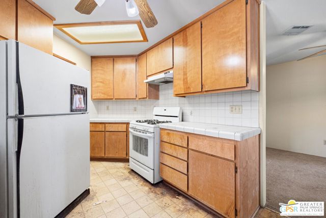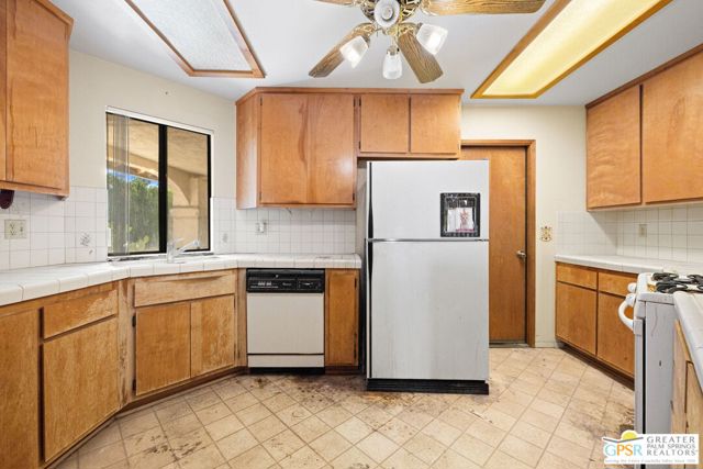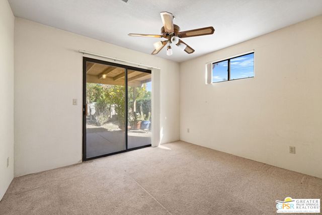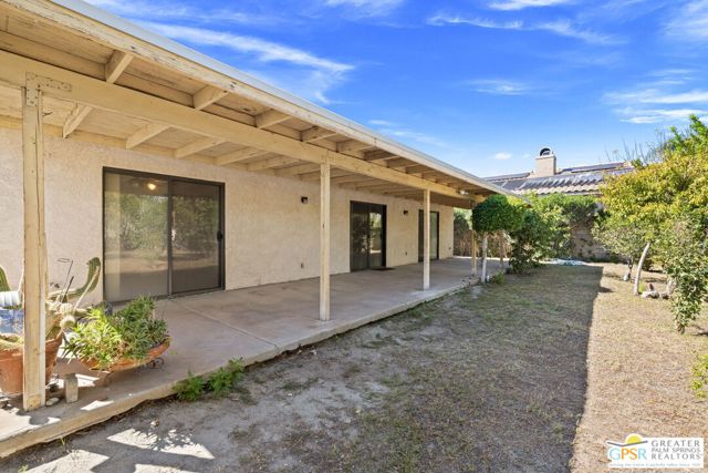 FIXER ALERT in Cathedral City's Panorama neighborhood. This 3 bed, 2 bath home with attached two car garage and large backyard is READY FOR A MAKEOVER! Open concept layout connects the living, dining, and kitchen areas for easy everyday living and entertaining. A charming pass through window between the kitchen and dining area adds character and convenience. The main living area opens to a spacious covered patio that runs the length of the home, ideal for outdoor enjoyment. Primary Ensuite with access to a patio, a large walk in closet, and a private bath. On the other side of the house are Bedrooms Two and Three. Bedroom Two opens to the patio, and both bedrooms have easy access to a hallway bath. The backyard includes mature shade trees and room to design your own desert retreat or BUILD YOUR OWN POOL AND SPA. Attached two car garage, too! Close to shopping and dining along Date Palm Drive, quick access to I 10, and just a short hop to downtown Palm Springs. A great opportunity to add your personal touch and make it shine.