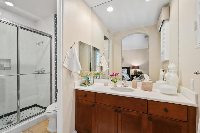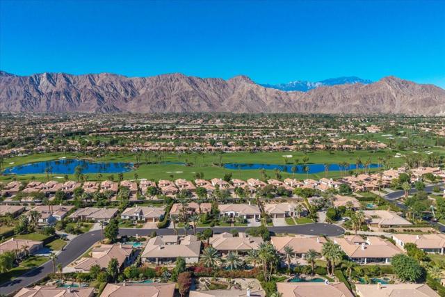 Step into a European oasis within the intimate, gated community of Talante, where this 3-bedroom, 3.5-bath estate plus a large, custom-built executive office redefines luxury desert living. Welcomed by custom cedar garage doors and a flagstone courtyard with a serene water feature, the formal entry's custom chandelier introduces a grand great room featuring a stonecast fireplace and handsome built-ins. The Chef's Kitchen is equipped for grand entertaining with a wine bar with chiller, built-in refrigerator, double ovens, and a large island. A highly functional split-floor plan ensures absolute privacy: two generous guest suites are ensuite, while the expansive Primary Suite features a private sitting area, a spa-like bath with a deep soaking tub, and two walk-in closets with custom built-ins. Outside, the spectacular backyard is a true resort, framed by mature date palms and offering an elaborate outdoor kitchen with an Alfresco BBQ, burners, and sink, alongside a fire pit. The centerpiece is the impressive 10-foot-deep pool with a diving board, tanning shelf, water features, and a spa. Impeccably maintained with newer HVAC/water heater, this grand-scale estate set on a private, expansive lot offers quality and upgrades rarely seen at this price point. Enjoy low HOA dues and immediate proximity to world-class golf, dining, and the Indian Wells Tennis Gardens. This is the ultimate, curated luxury lifestyle awaiting you.