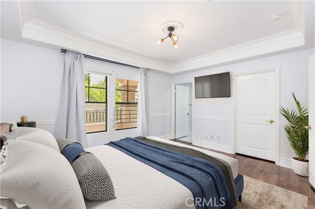Discover this stunning two-story, top-floor condo in a fully secured building, offering 1,600 square feet of refined living space with three bedrooms and three full baths. Thoughtfully designed for comfort and functionality, it features one bedroom and full bath on the main level, plus two en-suite bedrooms upstairs, including a primary suite with dual sinks, soaking tub, and separate shower. Located within the highly coveted Carpenter School District, this condo showcases high ceilings with detailed moldings, distressed hardwood floors, recessed lighting, and a cozy fireplace. The gourmet kitchen is equipped with stainless steel appliances, ample cabinetry, and bar counter seating, ideal for both casual dining and entertaining. Additional highlights include a skylight, in-unit laundry on the upper level, two tandem parking spaces in a gated garage, and access to a community gym and recreation/study room. Set in a vibrant, walkable Studio City neighborhood, moments from Tujunga Village, the Farmers Market, CBS Studio Center, and Sushi Row, this condo offers an exceptional blend of elegance, practicality, and location.