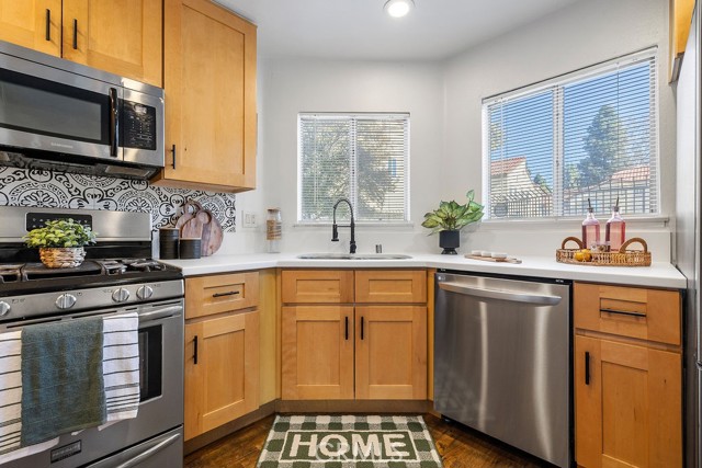 This beautifully remodeled & best priced 2-bedroom home offers comfortable and stylish living space. Inside, you’ll find a bright open layout with brand-new appliances, modern finishes, and thoughtful updates throughout. The spacious living area flows seamlessly into the french doors onto the patio, perfect for entertaining or relaxing at home. Both bedrooms are generously sized with ample closet space, and the bathroom features a functional clean design. Enjoy the convenience of an in-unit washer and dryer, in addition to two parking spaces, one in the attached garage with a large storage area & one assigned outdoors near the unit.. The community enhances everyday living with wonderful amenities, including RV parking, multiple sparkling pools, spas, tennis & basketball courts, jogging trail, tot lot, and nearby parks—ideal for enjoying the outdoors and an active lifestyle in a well-maintained, peaceful community. Centrally located just blocks from large shopping centers, dining, & minutes to Trader Joe's, Target, Starbucks and easy access to the 118 freeway, this is Simi Valley living at its finest.