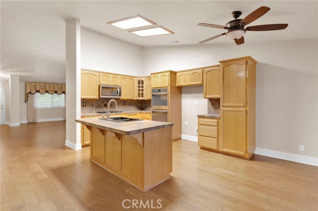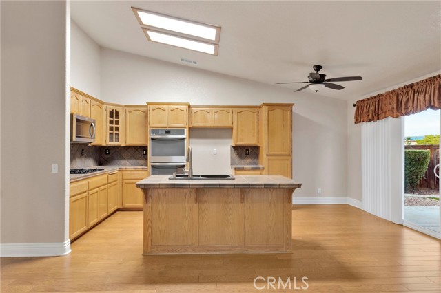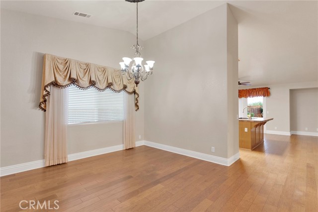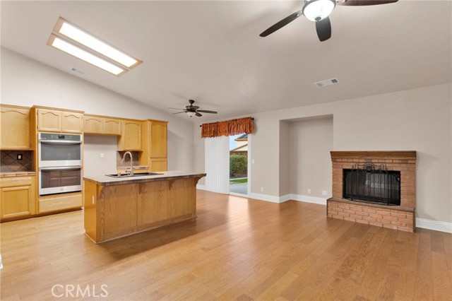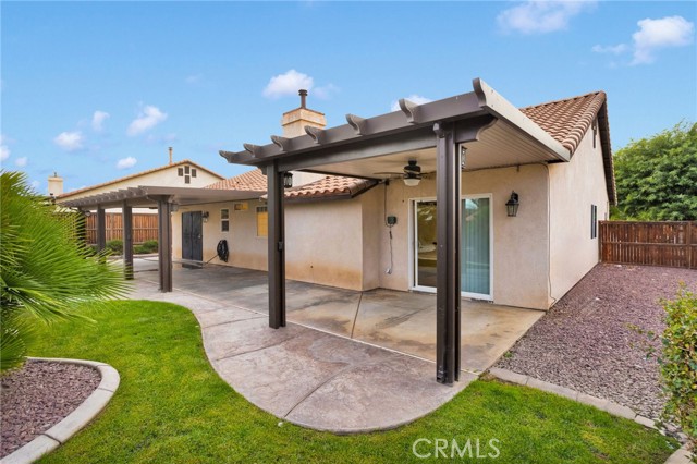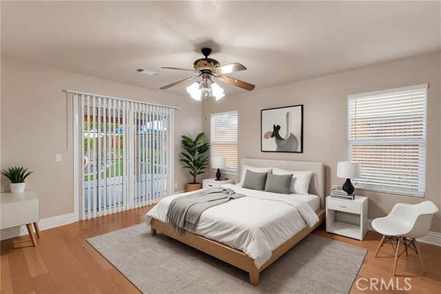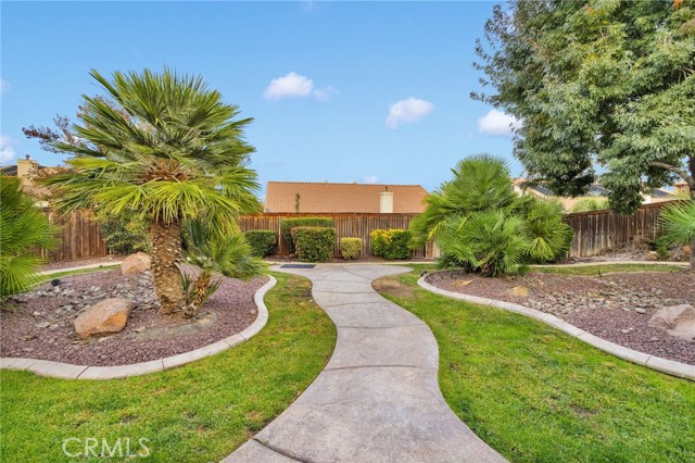 WELCOME TO THIS BEAUTIFUL HOME IN EAGLE RANCH! SINGLE STORY HOME LOCATED ON A CUL-DE-SAC! EXTRA LARGE 11,761 SQUARE FOOT LOT. This home features 4 bedrooms and two baths. Formal living and dining room. Spacious kitchen opens to the family room with fireplace. Kitchen has lots of cabinets, double oven, island and breakfast bar. Indoor laundry with lots of counter space and cabinets. New real wood flooring throughout. New tile in laundry rood and baths. Three-car garage with cabinets and work bench. Beautifully landscaped front and rear. Park-like setting with two covered patios. Mature Mesquite Tree and Palm Trees. Close to schools, shopping and restaurants. Easy freeway access to I-15 Freeway and Highway 395. Large primary bedroom with walk-in closet. Good-sized primary bath with double sinks, separate tub and shower. You will not be disappointed!