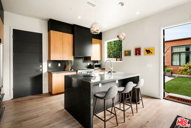 Stunning 2021-built gated townhome in the heart of Culver City. This fully furnished 3-bedroom, 4-bath residence offers 2,186 sq ft of light-filled interiors, modern finishes, and a thoughtful layout designed for comfortable, elevated living. In addition to the en-suite bedrooms and main living spaces, the home features a versatile bonus room perfect for an office, gym, or media space. Enjoy your own private yard, outdoor cameras, and direct access to a 1-car garage with an electric vehicle charger. Additional features include a beautifully designed laundry room, premium finishes, and spacious bedrooms with ample storage. Head up to the rooftop deck, complete with a built-in BBQ, sink, and firepit ideal for entertaining or relaxing under the Culver City skyline. Located just blocks from downtown Culver City's restaurants, theaters, and transit, this home offers the perfect blend of urban convenience and private comfort. Available for a 13+ month lease now, turnkey and ready to move in.