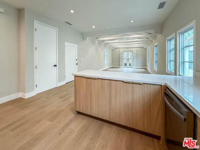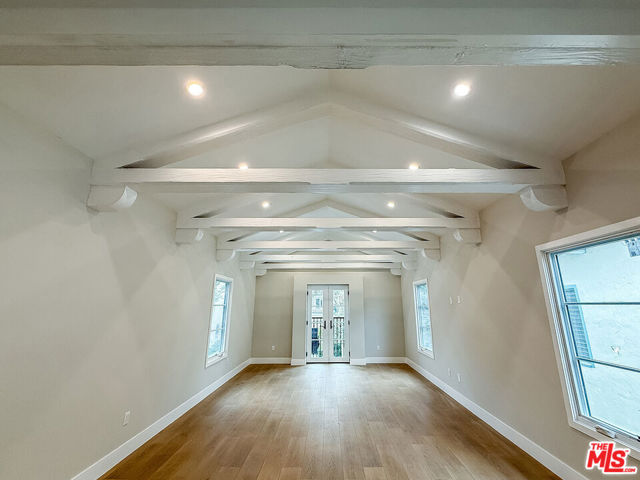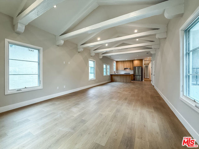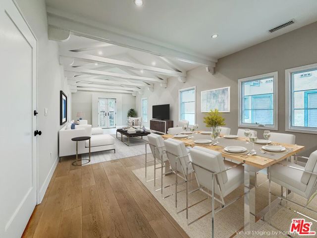 Stunning, Fully Remodeled Top-Floor 2-Bedroom Residence in Prime Beverly Hills! Welcome to this beautifully redone top-floor 2-bedroom, 2-bathroom unit offering approximately 1,350 sq ft of sophisticated living space in the heart of Beverly Hills. Every inch of this home has been meticulously remodeled with high-end finishes and modern conveniences, creating the perfect blend of luxury and comfort. Flooded with natural light, the open-concept layout is ideal for both everyday living and entertaining. The living room features vaulted ceilings with gorgeous exposed wood beams and a charming Juliet balcony that invites in fresh air and tree-lined views. The gourmet kitchen showcases sleek custom cabinetry, quartz countertops, and top-of-the-line stainless steel appliances. Luxurious bathrooms offer spa-like walk-in showers, floating vanities, designer tilework, and luxury fixtures. Additional highlights include new laminate flooring throughout, dual-pane windows, recessed lighting, stylish light fixtures in the bedrooms, ample closet space, and in-unit washer and dryer. Central air and heat provide year-round comfort, and off-street parking is included.Located just minutes from world-class dining, shopping, and entertainment, this home offers an exceptional lifestyle in one of Los Angeles' most prestigious neighborhoods. A rare opportunity to lease a top-floor luxury residence with unique character and modern style! Schedule your private showing today!
