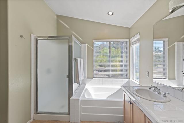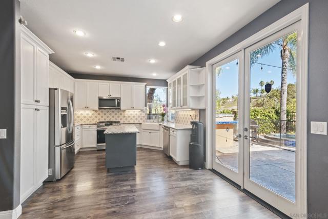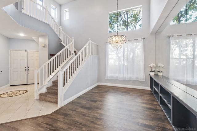 Beautiful and spacious Sabre Springs 4 Bed + Bonus Room Home blends comfort, location and lifestyle! Located on a peaceful cul-de-sac this home features a stunning and open kitchen with white shaker cabinets and stainless steel appliances including French Door refrigerator. The kitchen overlooks the sparkling swimming pool and jacuzzi, outdoor dining area. Other features include 3 car garage, two-story ceilings, formal dining area, and a flexible bonus room perfect for a home office, playroom, or media space. One of the bedrooms is located downstairs, as well as the laundry room. Ideally situated near Sabre Springs Park, playgrounds, sports fields, and walking trails, this home has great proximity to retail, dining, freeways, and top rated Poway Unified Schools.