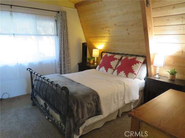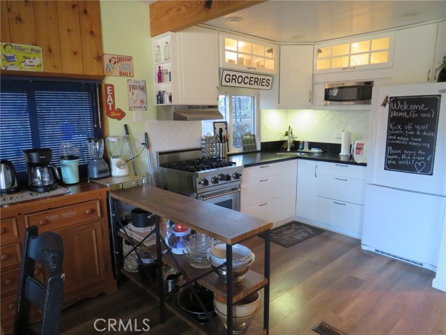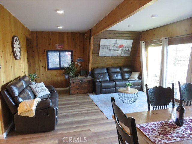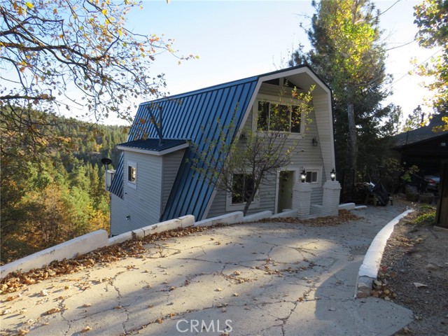 Experience breathtaking mountain views from the charming deck off the living room, perfect for soaking in the natural beauty. The home offers convenient parking with a gentle slope and just a few steps to the front door. Inside, the updated kitchen shines with its clean and modern aesthetic, seamlessly integrating into the home's inviting floor plan.This Gambrel-style home spans three levels. The uppermost level hosts two cozy bedrooms and a bathroom, providing a private retreat. On the main level, you'll find a well-appointed kitchen, an additional bedroom and bathroom, a dining area, a cozy fireplace, and a spacious living room that opens onto the deck, ideal for enjoying the stunning views. The lower level is a haven of relaxation, featuring a large living area with beautiful, beamed ceilings, a third bathroom, a laundry area, and access to the backyard. A second fireplace adds warmth and charm, making this space perfect for unwinding. Located in one of the nicest areas of Running Springs.