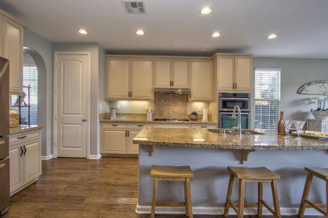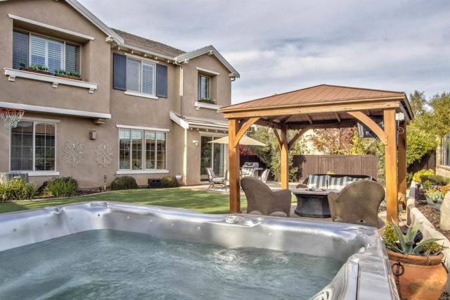 Perched on a private lot with sweeping hillside views, this move-in-ready La Costa Oaks gem combines luxury, flexibility, and exceptional value. Ideally situated at the top of a quiet cul-de-sac of just sixteen homes, it offers privacy and a true sense of community. With 4 bedrooms, 3 full baths, and a versatile bonus room, the open-concept floorplan is designed for modern living. Enjoy hardwood floors throughout, updated baths with new granite and custom sinks, a cozy fireplace and a downstairs bedroom with full bath, perfect for guests or multigenerational living. The bonus room easily adapts as a home office, gym, or playroom. Step outside to your low-maintenance backyard oasis featuring lush artificial turf, a covered pavilion with outdoor TV, and a relaxing hot tub ideal for year-round entertaining. The expansive lot offers endless potential for a future pool or ADU. Located within the top-rated Encinitas Union and San Dieguito Union High School Districts, residents enjoy resort-style community amenities including pools, clubhouse, and fitness center, all with low Mello-Roos and a low tax rate. This is La Costa Oaks living at its best, a rare opportunity to own a stylish, move-in-ready home in one of North County’s most coveted communities.