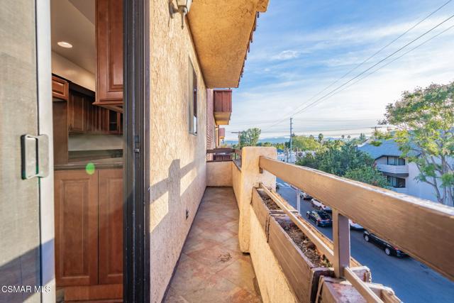 2 + 2 Penthouse (top floor) condo is ready for YOU! 1,218 sf spacious residence with Mountain Views, 2 private balconies, large bedrooms, 2 side-by-side private parking spaces in security garage, private extra secured storage. This unit also boasts a custom built-in wall unit, wood flooring, upgraded baseboards, washer/dryer & upgraded kitchen cabinetry as well as a lovely fireplace with custom mantle & recessed lighting. A pool & separate spa are available for your use as well as indoor mailboxes, elevator, etc. Don't miss this opportunity to own this prime SFV residence!