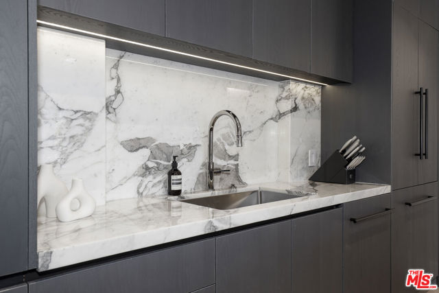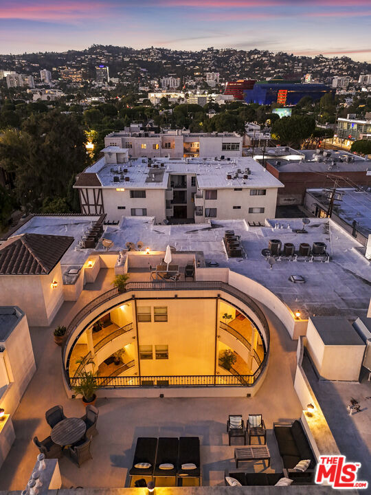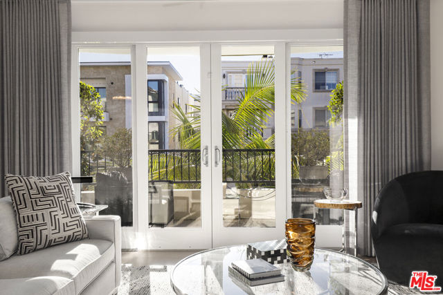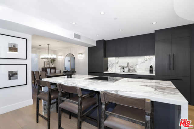 An extraordinary residence in the heart of West Hollywood, this front-facing corner home redefines modern luxury. Exquisitely reimagined with the finest finishes, the 2-bedroom, 2.5-bath floor plan is bathed in natural light and framed by wide-plank wood floors, creating a seamless blend of sophistication and comfort. The grand living room, anchored by a sleek fireplace, opens to an expansive balcony, setting the stage for effortless indoor-outdoor living. A culinary masterpiece, the kitchen showcases Miele appliances, imported Italian marble countertops, integrated refrigeration, and bespoke custom cabinetry a space designed for both everyday living and entertaining at the highest level. The adjacent dining area, with its own private balcony, extends the home's sense of refinement. The primary suite is a sanctuary unto itself, featuring a custom-designed walk-in closet and a spa-inspired en suite bath with dual vanities, a soaking tub, and a glass-enclosed shower. The secondary bedroom offers its own private en suite retreat, perfect for guests or an elegant home office. Additional luxuries include an in-unit laundry, two secure parking spaces, and access to a spectacular rooftop deck with sweeping panoramic views of the city skyline. Just moments from the most coveted dining, boutiques, and nightlife West Hollywood has to offer, this one-of-a-kind residence epitomizes timeless elegance and contemporary sophistication.
