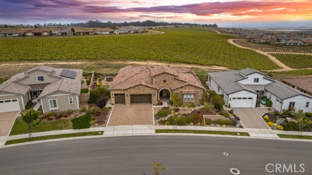 Experience resort-style living on California’s coveted Central Coast. Perfectly positioned between San Luis Obispo and Santa Barbara in an exclusive golf course community, this meticulously upgraded Marsanne model offers refined living with seamless indoor-outdoor flow and sweeping vineyard views from the backyard. Designed for comfort, style, and effortless elegance, every detail of this home speaks to a life well lived. Step inside this expansive open floor plan with luxury vinyl flooring throughout, custom tile selections in stone and glass, and a chef’s kitchen outfitted with Monogram GE appliances, designer pendant lighting, and soft-close cabinetry with pull-out shelving. Each of the three spacious bedrooms is en suite, including a guest-friendly powder room and an oversized third suite with private entry—perfect for extended stays, creative pursuits, or conversion into a private casita. Outdoor living is elevated with low-maintenance landscaping, a fire pit, hot tub, tranquil fountain, a dog run with artificial turf and Sweetwater stone hardscape. A charming rose garden and fruit trees—apple, persimmon, orange, and lemon—create a peaceful garden retreat framed by vineyard views. As part of this vibrant resort community, enjoy access to tennis, pickleball, lap swimming, an outdoor spa, a state-of-the-art fitness center, on-site dining, and the lush fairways of the surrounding golf course. This is more than a home—it’s a lifestyle.