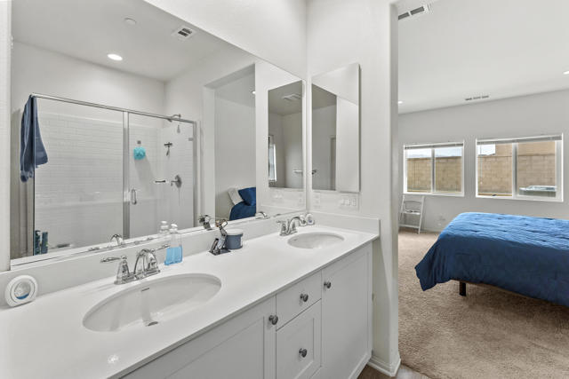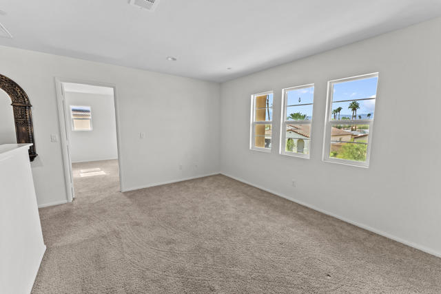 Welcome to the beautiful community of Monte Vina in Indio. This property features 4-bedrooms 3 bath offering luxury and flexibility possibility for entertainment. Main floor guest/office ensuite and a separate primary suite on the main level. The open great room flows into a designer kitchen with granite, stainless appliances and an large island, while upstairs you'll find a large loft and two additional bedrooms. Outside enjoy the oversized 8,399 sq ft lot- offering space for outdoor entertaining and potential RV parking. Home features smart home automation LED recessed lighting throughout.