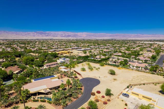 Located beyond the impressive entry gates of Indio's intimate Croquet Court collection, this flat, buildable homesite spans more than one acre, providing ample room for the custom home that you have always dreamed of creating. Surrounded by upscale estates in a quiet setting with mountain views, the sprawling lot offers a prime position at the end of a cul-de-sac in the established neighborhood, which currently features 15 completed residences and just a few remaining homesites. There are no short-term rental restrictions at Croquet Court, and the HOA fees are only $250 per year. The Empire Polo Club, which hosts the annual Coachella Valley Music and Arts festival and the popular Stagecoach Festival, is just minutes away, providing a tremendous source of short-term rental income for the area. With the potential to generously accommodate a spacious, fully appointed custom home complete with a resort pool, spa, outdoor kitchen and more, the lot is embellished with one existing block wall, an established oleander hedge on two sides that enhances privacy, and views that will not be compromised by future development on the parcel to the west. A natural gas connection is available, a water well is possible for irrigation, and municipal water and septic are featured. Just off 49th Avenue, known as Indio's Golden Mile, Croquet Court is south of Highway 111 yet close to dining, golf, entertainment, Old Town La Quinta, casinos, major retailers and vibrant shopping centers.