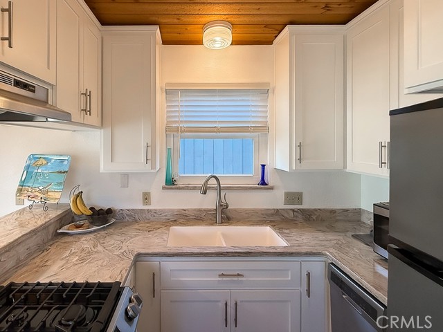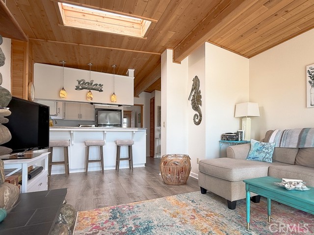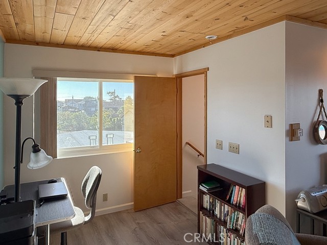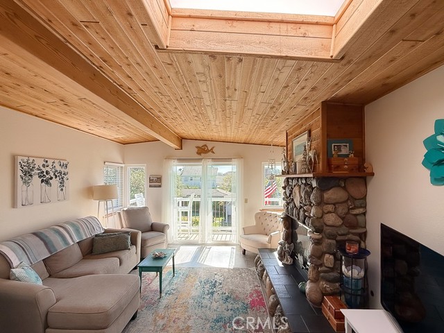 Cambria Coastal Charmer! Move-in ready and beautifully maintained, this bright and sunny Park Hill home captures the essence of coastal living. Enjoy the sound of the ocean and gentle sea breezes from this 3-bedroom, 2-bath retreat featuring an open-concept living area with pine-beamed ceilings, luxury vinyl plank flooring throughout and a cozy gas fireplace framed by a stone hearth. The updated kitchen shines with modern finishes, while the freshly painted interior and exterior, newer roof, and low-maintenance yard make for easy living. The balcony extends off the main living area, providing a pleasant spot to enjoy the outdoors. The upstairs bedroom enjoys an ocean view, while the first level includes an oversized bedroom and bathroom with a convenient kitchenette—ideal for multi-generational living or guest privacy. Located close to Shamel Park, Moonstone Beach, and the Fiscalini Ranch upper trail, this home offers the best of Cambria’s coastal charm with comfort, flexibility, and style.