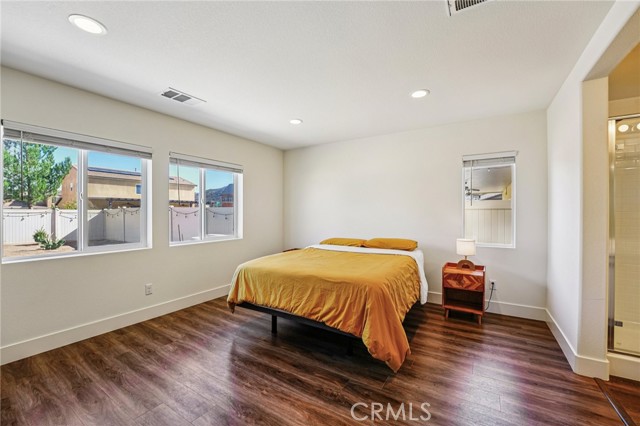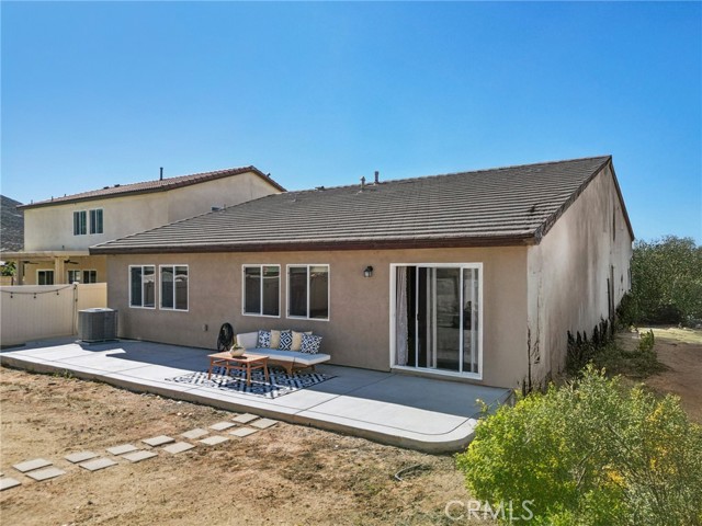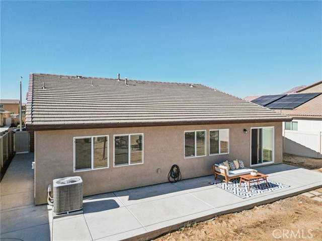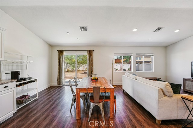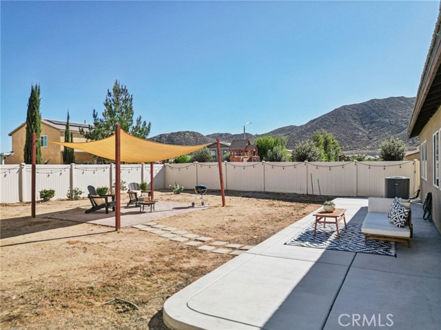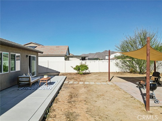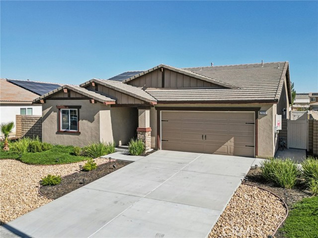 Beautiful Home with Open Floor Plan, Mountain Views, and No HOA! This upgraded single-story home offers modern comfort and a bright, open layout in a desirable community. Enjoy the upgraded LVP flooring throughout, great natural light, and an easy flow between the living, dining, and kitchen areas—perfect for everyday living and entertaining. The kitchen features stylish countertops with a granite-look finish, ample cabinetry, and convenient access to the dining area. A sliding door opens to the spacious backyard with mountain views, vinyl fencing, and a large concrete patio with an additional covered area ideal for BBQs and outdoor gatherings. The privately located primary suite includes an en suite bathroom with dual sinks and a walk-in closet. Two well-sized bedrooms and a full hallway bathroom complete the thoughtful floor plan. Additional highlights include a laundry room, attached two-car garage, leased solar system, and attractive curb appeal. A wonderful opportunity to enjoy open-concept living, outdoor space, and energy efficiency—all in a peaceful neighborhood.