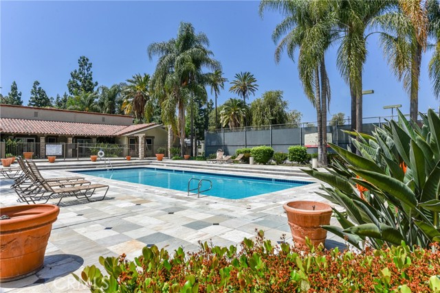 Beautiful landscape condo in the Monterey Villa, the nice quiet and gated community. Granite counter tops in kitchen and baths. Dishwasher, microwave, stove, water filter included in lease. Ceiling fan in dinning area, large size covered patio. One detached assigned carport & another opened parking space. Swimming pool, two tennis courts, jacuzzi, spa, gym, sauna, onsite laundry. Close access to 5, 55, 57 and 22 free ways. Close to shopping and restaurants.