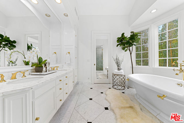 CHARMING ESTATE in prestigious area of Brentwood: sitting on a grand 10,572 square foot lot this gorgeous two-story estate has 6 bedrooms & 6 bathrooms with finest custom details & quality at every corner. Privately tucked away at end of cul-de-sac with private driveway & 3 car garages. Its a grand yet intimate space make ideal for elegant cozy living & entertaining, special highlights: the spectacular primary suite with vaulted ceiling, an intimate sitting area, 2 large walk-in closets, balcony, spa-like bath and soaking tub and double vanity - fireplace in family room, primary suite, living room, office and patio, an oversized gourmet kitchen with large -center island, and walk-in pantry with glass ceiling breakfast area. All doors open to a lush outdoor space, including: a pebble-tech saltwater pool with rockslide, covered lounge area with fireplace, and a built-in grill with large island. Backyard haven! Perfect for entertaining all year long! The property also includes private office with fireplace, guest suite with separate entryway and large gym. This property is also a part of an award-winning school district and neighboring to the best restaurants and shops of the beautiful city of Brentwood.
