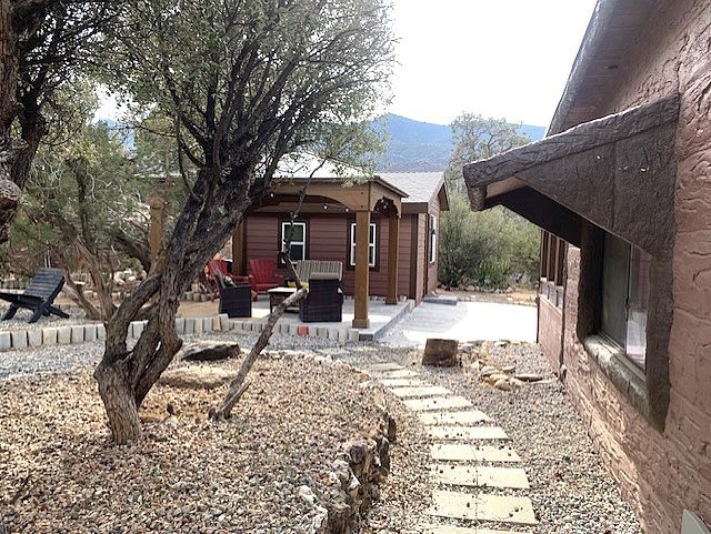 1940 Cabin with separate Studio on fully fenced and gated large lot located in the wonderful Pinyon Pines neighborhood ~ 2 bedrooms / 1 Bath in primary Cabin, with additional Bedroom and bath in the detached Studio ~ Nestled within beautiful native vegetation, including many Pinyon Pine Trees ~ A hen house and dog kennel are located at the rear of the property ~ Private paths meander through this larger parcel, with an lovely, covered outdoor sitting area where you are able to relax, entertain and enjoy this lovely spot ~ Views of the nearby Santa Rosa Mountains are a great bonus to this unique property ~