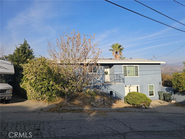 What a VIEW-Investor Opportunity knocks on this single family home perched high on the hill. Has upgraded kitchen and counters- fireplace in Living room open floorplan on top level. Primary bedroom and bath. and a second bedroom upstairs and bathroom. Possible to put another bedroom on upper level. Lower level can be accessed from driveway via a doorway, or from upper level via a spiral staircase. Rear deck needs work- needs new roof as some has blown off and some interior water damage including ceiling and laminate flooring. Has Central Heat and Air. Great potential to turn this into a diamond- Sold as is cash or Hard money loans only. Buyers and agents to verify all square footage, rooms counts. Previous garage was enclosed sometime ago by a prior owner and believed not included in sq footage.