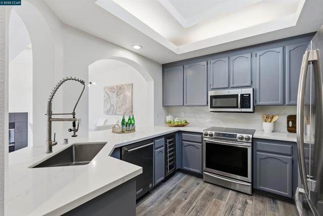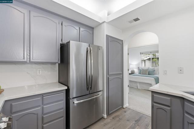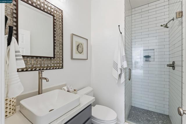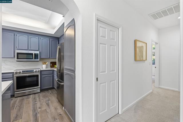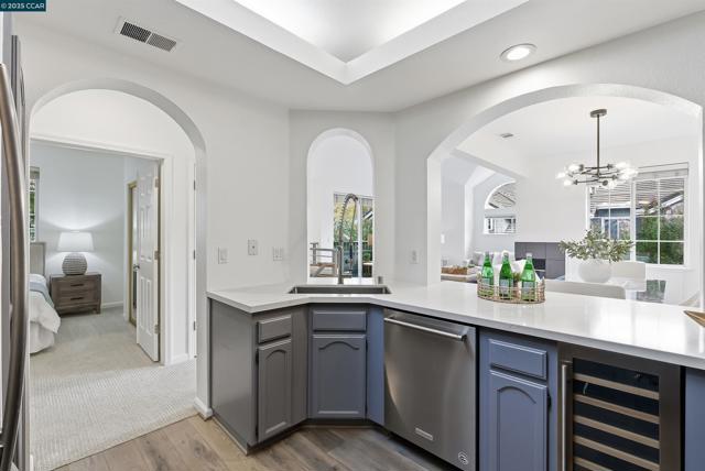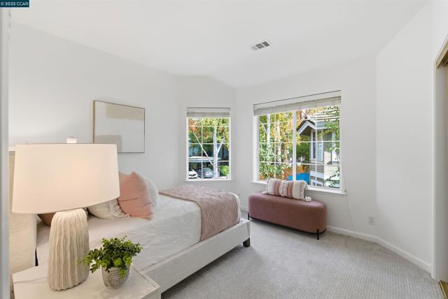 Welcome to this beautifully updated 3-bed, 2-bath top-floor condo, where comfort meets convenience in the heart of downtown Danville. Bathed in natural light from large windows and enhanced by soaring vaulted ceilings, this home feels bright, open, and inviting from the moment you step inside. The spacious living and dining areas offer the perfect setting for both relaxing and entertaining. The updated kitchen features sleek countertops, stainless steel appliances, ample cabinetry, and modern finishes. Both bathrooms have been tastefully remodeled with contemporary fixtures and stylish tilework. The thoughtful floor plan includes a private primary suite with generous closet space and an en-suite bath, plus two additional bedrooms ideal for family, guests, or a home office. For added convenience, the home includes in-unit laundry and an attached garage. The HOA includes a pool and clubhouse. Step outside and enjoy the unbeatable location — just a short stroll to downtown Danville’s charming shops, cafés, and restaurants, and the nearby Iron Horse Trail. Don’t miss this exceptional opportunity to own a turnkey home in the heart of Danville!