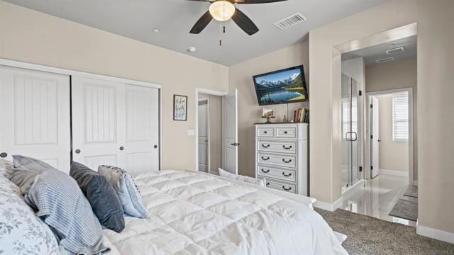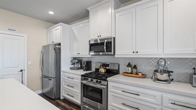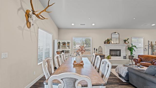 Move-in ready country living in Ramona. Built in 2019 with over $75,000 in upgrades, this home combines modern comfort with peaceful surroundings on a full, flat, usable acre ideal for adding an ADU or creating your own outdoor vision. The open floor plan features luxury vinyl plank floors, nine foot ceilings with a twelve foot pitch, and designer paint tones. The kitchen offers bright white cabinets, quartz countertops, and a stylish tile backsplash that gives it a clean, modern look. Outside you’ll find new pavers surrounding the home, an outdoor BBQ area, a new patio cover, and a new RV pad with full hookups. Owned solar provides energy efficiency, and the private driveway offers quiet seclusion away from street noise. One of the few homes in the area with a dedicated high speed Cox fiber optic line directly to the property. Enjoy views of Mt. Woodson to the west and the freedom of no HOA. A perfect blend of modern living and country lifestyle with space to grow, entertain, and create your dream property just minutes from town.
