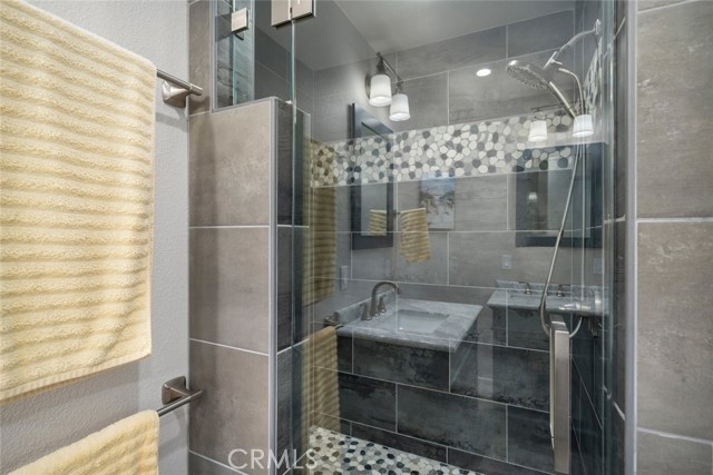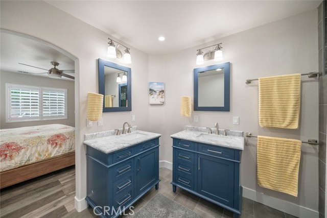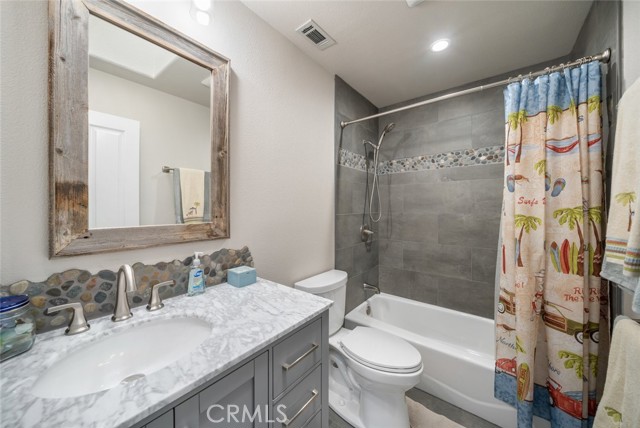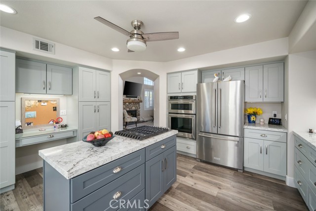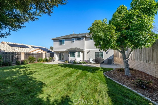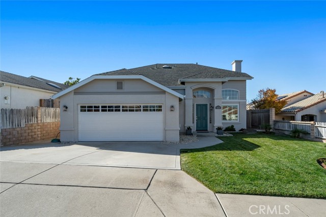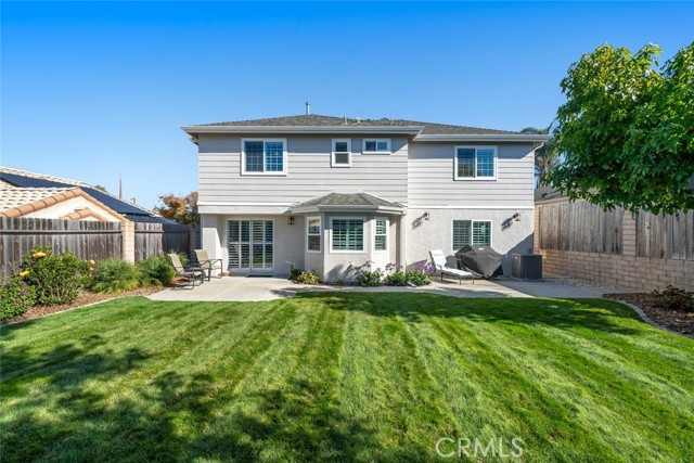 This exquisitely remodeled 4-bedroom residence features both upstairs and downstairs primary suites. Located in a highly coveted cul-de-sac bordering Grover Beach and Arroyo Grande, the home showcases refined craftsmanship and thoughtful upgrades inside and out. Creating a warm first impression as you arrive via the spacious driveway and new garage door is a manicured lawn and mature landscaping with automatic front and backyard drip irrigation and sprinkler system. The exterior has been freshly painted and enhanced with leaf guards on the gutters for easy maintenance. The walkway leads to an impressive entryway opening into the living room with soaring cathedral ceilings, Pergo laminate flooring, and a cozy fireplace featuring a new chimney back and updated fireplace glass. The elegant dining area flows seamlessly to the beautifully maintained backyard—perfect for entertaining with its concrete patio, lush grass lawn, privacy fencing, and manicured flower beds accented by mature trees. The kitchen offers abundant workspace with soft-close cabinetry, quartz countertops, a large island, and a built-in desk and pantry for extra storage. KitchenAid stainless steel appliances—including a gas range, microwave/oven combo, dishwasher, and refrigerator—add both style and functionality. Milgard windows with plantation shutters are complemented by new recessed lighting with dimmers, updated outlets and fixtures, and 5.5-inch baseboards throughout. Comfort is ensured year-round with central air conditioning and heating, plus a newer water heater. The upstairs primary suite includes an ensuite bath with dual vanities, a tiled walk-in shower, and a generous walk-in closet. The downstairs primary suite also boasts dual sinks and a custom stone-accented walk-in shower. Two additional bedrooms, one and a half bathrooms, and an indoor laundry room complete this versatile floor plan. Too many upgrades to list—this home truly has it all. Centrally located just minutes from the beach, the Village of Arroyo Grande, and so much more!