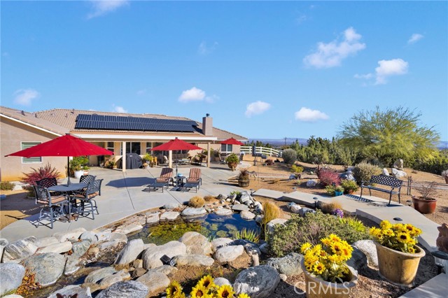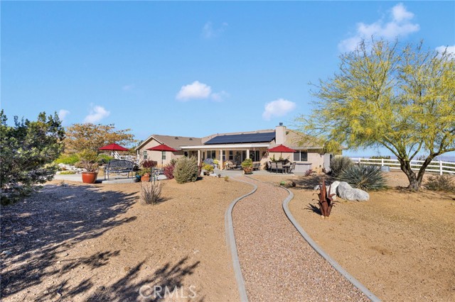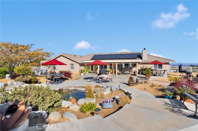 Exquisite Pinon Hills Oasis on Paved Road – A Rare Offering! Experience luxury desert living in this one-of-a-kind Pinon Hills estate, perfectly situated on a paved road and spanning 2.5 acres of pristine, usable land. Meticulously maintained by its original owner, this immaculate residence radiates pride of ownership and truly shows like new. Equestrian and hobby enthusiasts will appreciate the well-appointed horse arena and barn, adding to the estate’s rare versatility and appeal. Step inside to discover a refined interior featuring three spacious bedrooms, two elegant bathrooms, a formal dining room, and a generously sized indoor laundry room. Designed for both comfort and style, the home offers seamless flow and exceptional attention to detail throughout. The three-car garage provides ample storage and convenience, while the expansive grounds redefine outdoor living. The professionally landscaped backyard is a private sanctuary—complete with a tranquil waterfall and koi pond, lush greenery, and a large covered patio ideal for entertaining. From here, take in the breathtaking desert sunsets that make this property truly unforgettable. The generously sized solar system helps to keep the electric costs down year around. Located just moments from Highway 138 for an effortless commute and a short drive to Mountain High Ski Resort, this residence offers the perfect balance of serenity and accessibility. A property of this caliber is seldom available—this is your opportunity to own a private desert retreat where sophistication meets natural beauty.