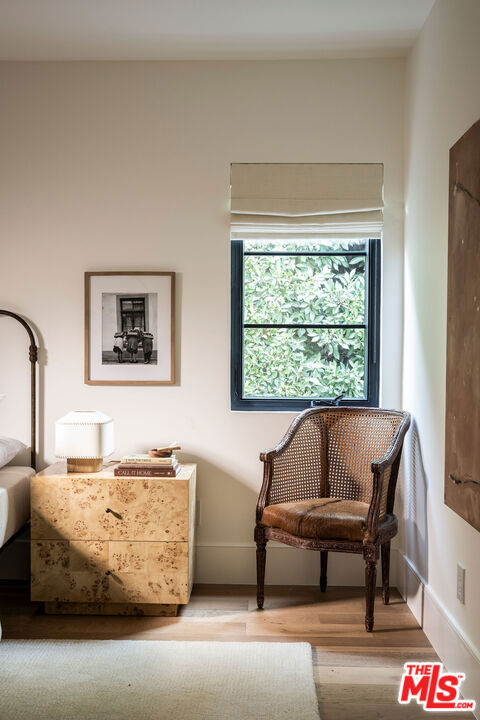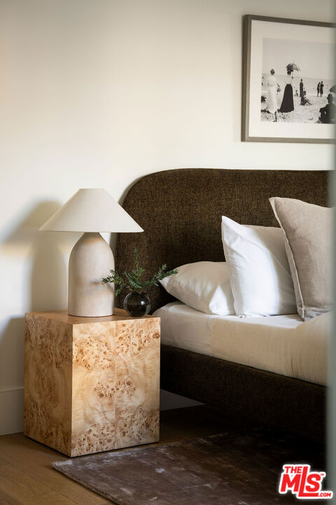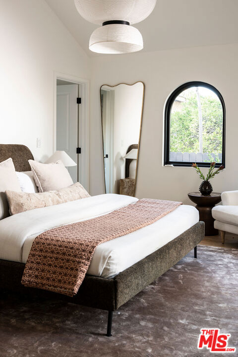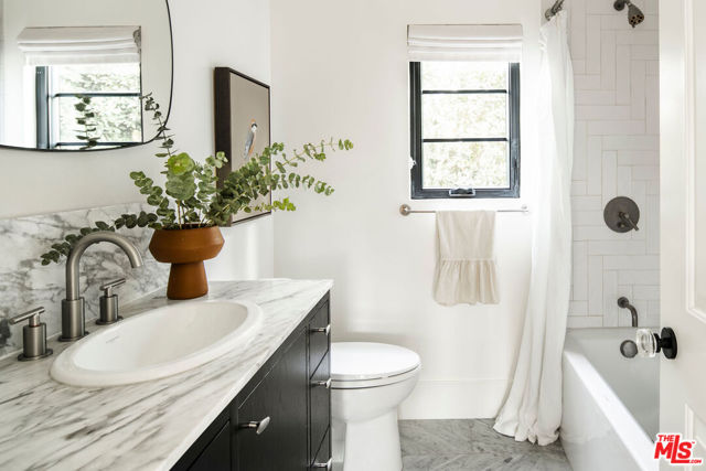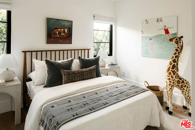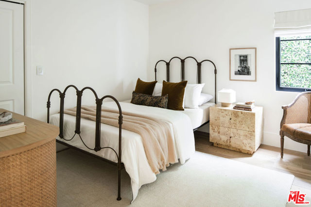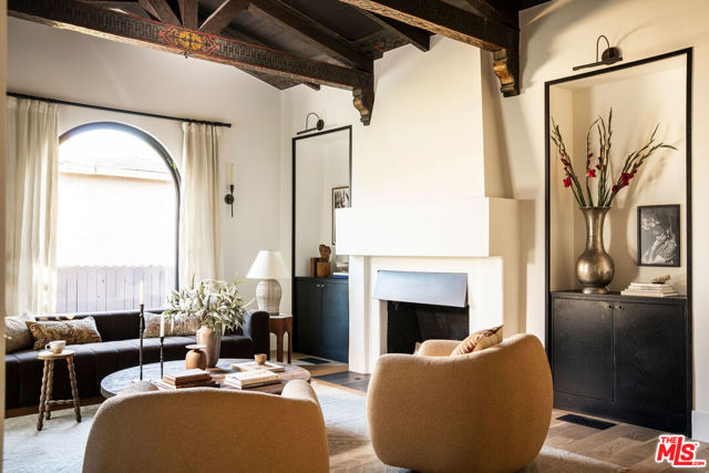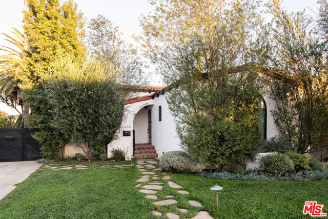 A soulful 1928 Spanish thoughtfully restored and renovated to honor its original character while introducing a refined modern sensibility. Beyond an arched alcove entry framed by a mature olive tree, the home opens to a sun-filled living room with vaulted ceilings and beautifully restored hand-painted beams that span both the living and dining areasan intricate nod to its Old World craftsmanship. A wood-burning fireplace anchors the space and flows into a chef's kitchen with marble counters, custom cabinetry, a Bertazzoni range, oversized island, and walk-in pantry. The main house offers four bedrooms and three bathrooms, including an expansive primary suite with high ceilings, a custom walnut walk-in closet, and a spa-like bath featuring a marble slab shower accented by timeless Waterworks and Phylrich fixtures. French doors open to a Saltillo-tiled deck overlooking a fully hedged-in grassy backyard that creates a private escape, perfect for entertaining or quiet afternoons outdoors. The property also includes a fully permitted ADU with stainless-steel appliances and butcher-block counters, plus a versatile storage shed ideal for an art studio or creative workspace. Tucked on one of the most beautiful streets just off tree-lined Angeles Vista Boulevard, your drive home feels like a serene escapeyet you're moments from Hilltop Coffee, Jon & Vinny's, and a quick hop onto the 90 Freeway connecting you to everything on the Westside.