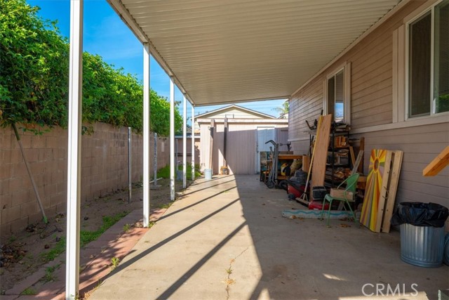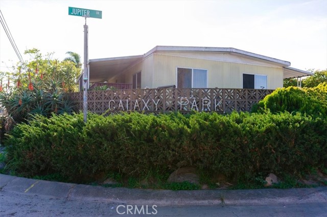 This lovely home sits on a spacious corner in the Galaxy Mobile home Park! It has skylights, high ceilings , crown molding recessed lighting and laminate hardwood floors! The large kitchen has an island, lots of cabinets and a nook. There is a separate laundry room that opens up onto a nice deck over looking the spacious yard. There is a mature lemon and lime tree that produce a lot of fruit. There are two sheds. The primary bedroom has a large closet and an ensuite bathroom with a sunken tub, separate shower and double sinks. There is a formal dining area and a nice size living room.