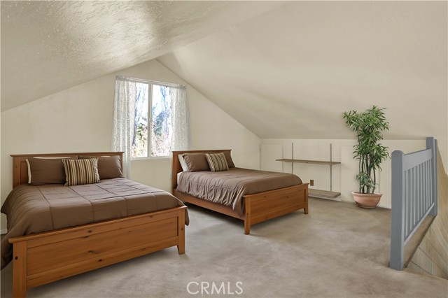 Nestled in a quiet cul-de-sac, this inviting 2-bedroom, 1-bath cabin offers the perfect blend of mountain charm and modern comfort. The open living area features high ceilings, abundant natural light, and a stunning stone fireplace—perfect for relaxing after a day on the slopes or hiking the trails. A loft area adds flexible space for an office, guest room, or reading nook, while the enclosed bonus room with its own French doors provides privacy for a game room, studio, or sunlit retreat. Step outside to a large covered patio, ideal for entertaining or simply soaking in the peaceful mountain air. Set on a good-size, level lot with easy level entry and ample parking, this property offers year-round comfort and accessibility. Located in a serene neighborhood, it’s a great fit for full-time residents seeking tranquility—or investors looking for a desirable mountain rental. Don’t miss your chance to own a piece of Big Bear! Schedule your private showing today and start making mountain memories.