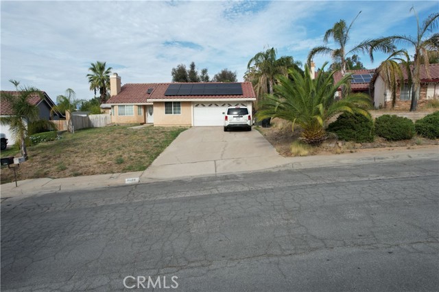 Beautifully maintained single-story pool home featuring 4 bedrooms, 2 baths, and a flexible bonus area—ideal as a home office, gym, or man cave. Open layout with vaulted ceilings, fireplace, and granite kitchen with bar seating. Primary suite with patio access and dual-sink bath. Enjoy a private backyard retreat with sparkling pool/spa, covered patio, and versatile sport area—once a fire pit zone, now perfect for basketball or gatherings. Solar panels and EV-ready garage add efficiency. Convenient to shopping, schools, and the 210 freeway.
