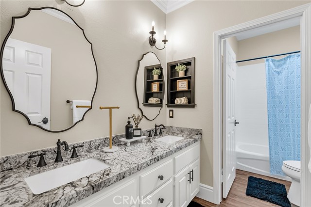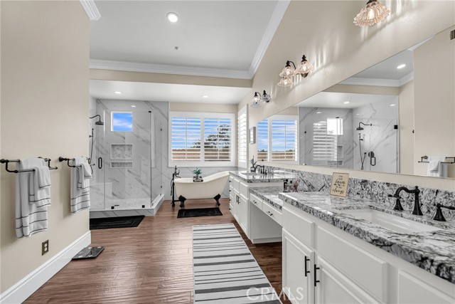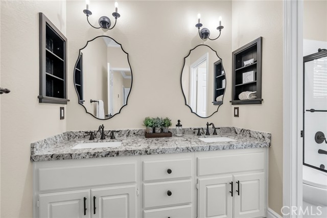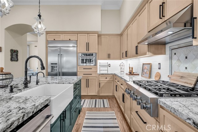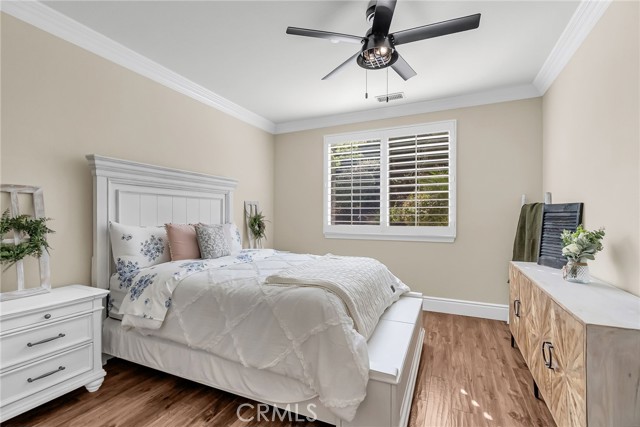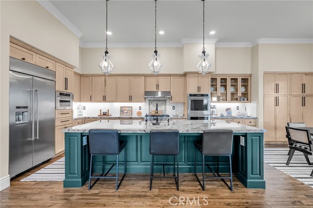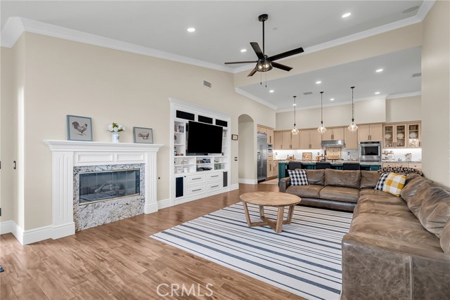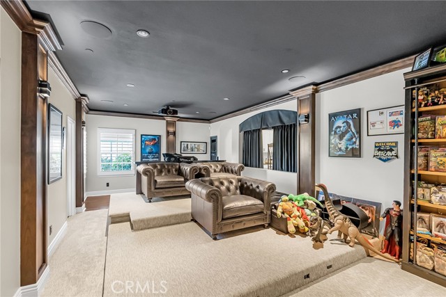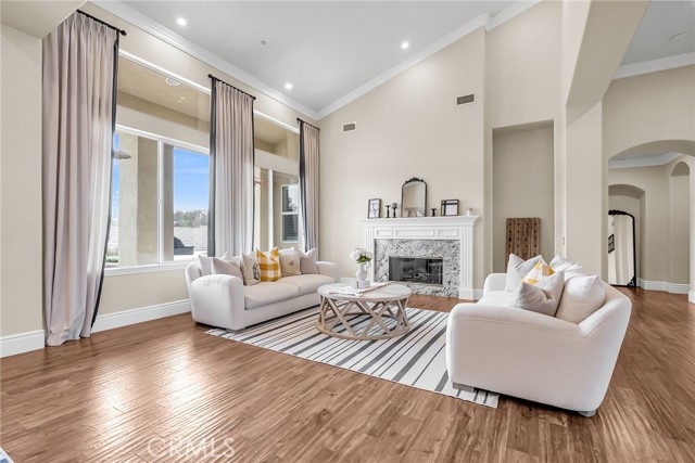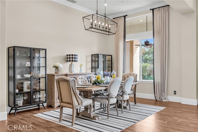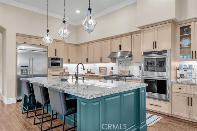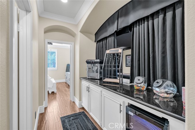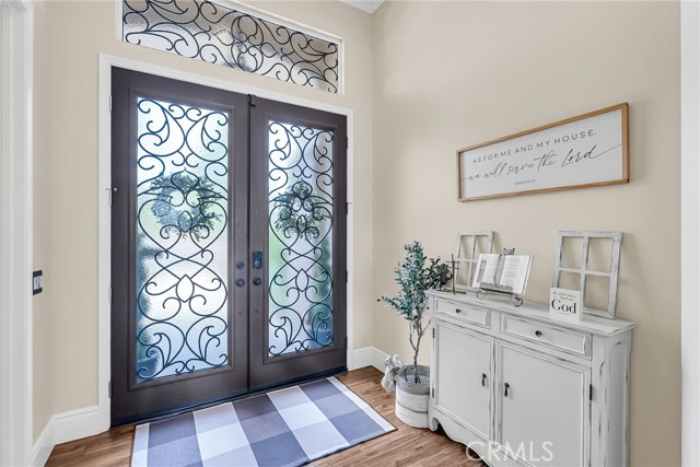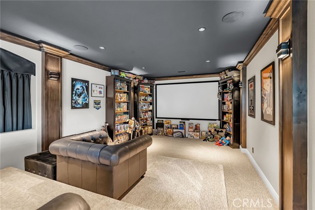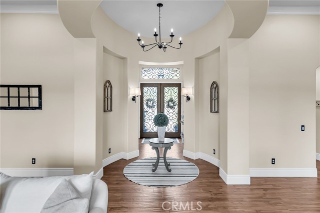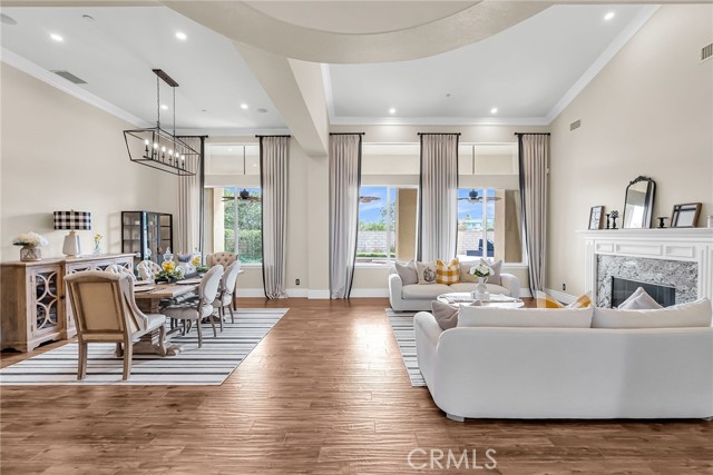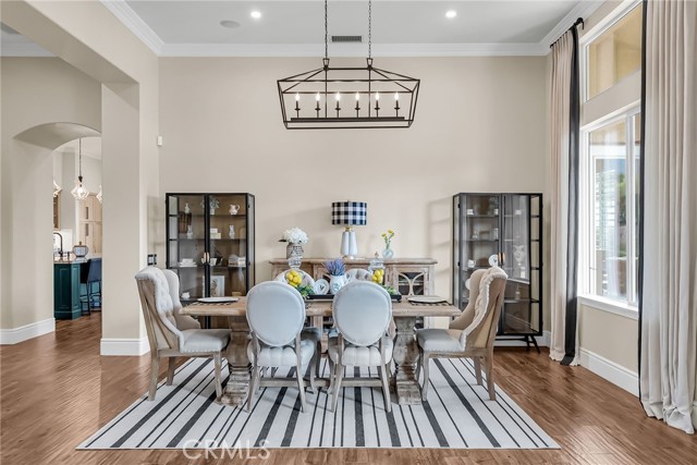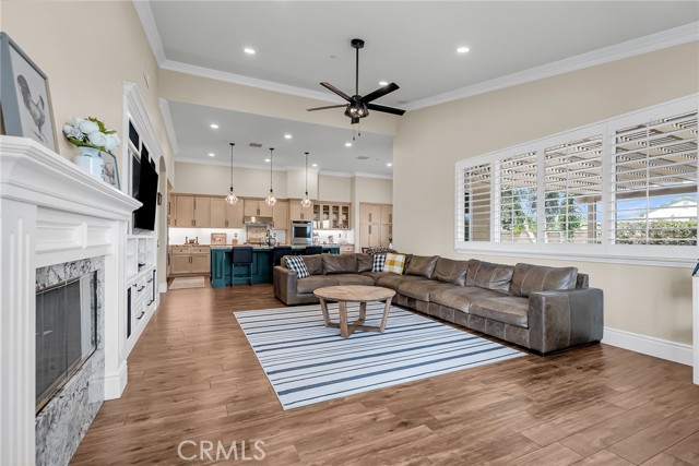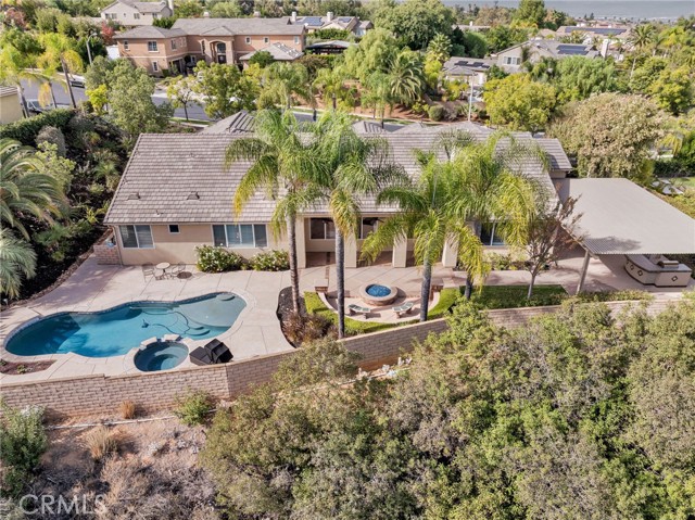 Discover refined living in this highly upgraded 4,000+ sq. ft. residence nestled within the prestigious gated community of Seven Oaks. Every detail of this home has been thoughtfully curated to deliver timeless sophistication and modern comfort. A grand formal entry welcomes you to soaring high ceilings with elegant crown molding, opening to an expansive living and formal dining area designed for effortless entertaining. The open-concept layout flows seamlessly into a spacious family room and breakfast nook, anchored by a newly remodeled chef’s kitchen featuring an oversized island, KitchenAid stainless steel appliances, and designer finishes throughout. The primary suite is a private sanctuary overlooking the serene backyard, complete with dual-entry walk-in closets and a spa-inspired bathroom showcasing dual vanities, a walk-in shower, and a deep soaking tub. Two additional guest suites offer exceptional comfort, including one with its own private en-suite bath. A custom home theater with tiered seating, projection, and surround sound creates a cinematic experience in the comfort of your home. The finished three-car garage features ample storage and a sleek epoxy floor finish. Step outdoors to a resort-style retreat, highlighted by a pebble-finish pool and spa, Alumawood patio cover, and fire pit lounge area, perfect for evening gatherings. Ideally located near the 15 Freeway, shopping, and dining, this residence combines elegance, comfort, and convenience—delivering the very best of luxury living in Corona.