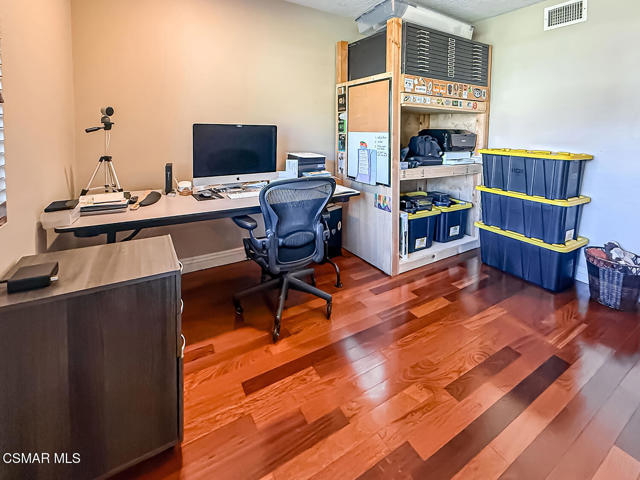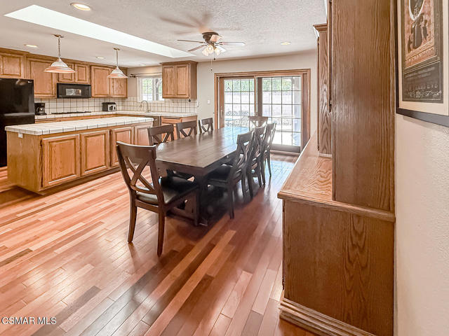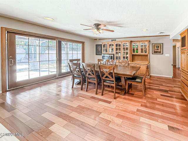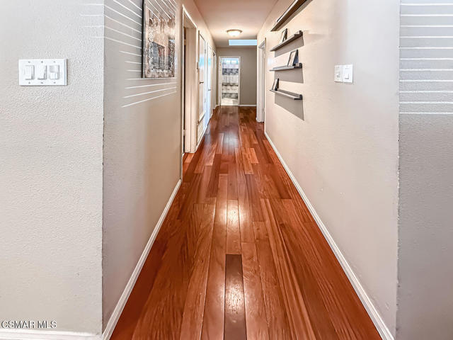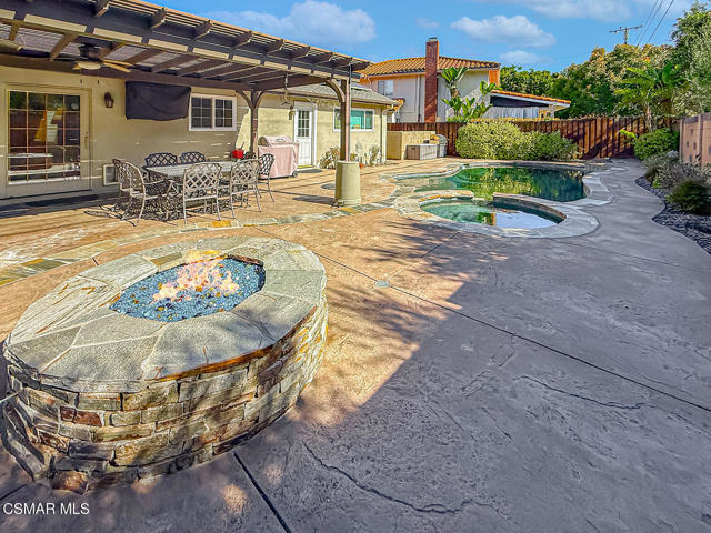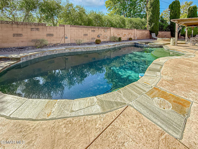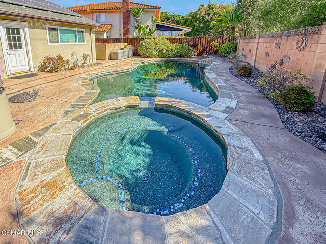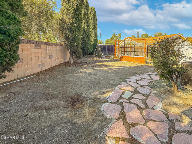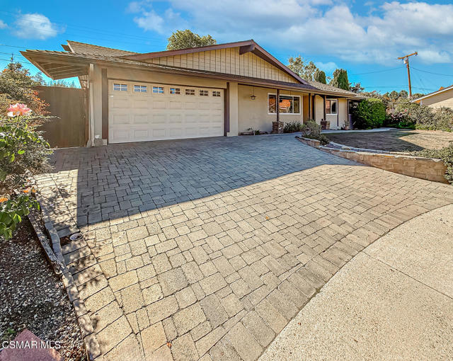 Upgraded Single-Story Pool Home with PAID-OFF Solar and a Backyard Retreat in the Heart of Thousand Oaks! Nestled on a quiet CUL-DE-SAC in an established neighborhood, this 3-bedroom, 2-bathroom has upgraded features with BIG-ticket improvements already done for you. The home's curb appeal is enhanced by the handsome paver-stone driveway & walking paths which lead to the front door. Inside the home you discover gorgeous REAL wood flooring, NO interior steps, and MULTIPLE skylights. Your immediate Living Room is centered around a classic brick-surfaced gas fireplace and lit by a soaring skylight above, offering a cozy sun-splashed space to relax or gather with guests. Adjacent, the spacious Kitchen offers a roomy center island, tile counters, a large skylight which fills the room with light, and a flanking dining area that has sliding glass to backyard views.The home's Primary Suite is a tranquil retreat, privately positioned at the rear of the home with a WALK-IN closet and windowed doors to the backyard patio. The remodeled en-suite bathroom includes a completely REDONE shower, a standalone soaking tub, and a SEPARATE vanity room with a sprawling granite-topped dual-sink vanity.Two secondary bedrooms provide plenty of closet & living space, serving as flexible accommodations for guests, family, or home office use. They utilize the hall bathroom which is updated with a granite-topped vanity and a tile-walled tub/shower combo -- move-in ready and stylishly finished.The highlight of this home is the exceptional backyard space -- step out onto the stamped colored concrete patio with to take in the scene: a pebble-surfaced in-ground pool & spa, stacked-stone surfaced gas fire pit, and a wide covered patio perfect for outdoor dining or unwinding in the shade. The mature landscaping, privacy fencing, and verdant surroundings create a peaceful ambiance that invites everyday relaxation or weekend entertaining. The LARGE side yard adds even more functionality, offering ample space for an ADU gardening, play, or additional storage.Other major upgrades include a fully owned and PAID-OFF Solar System for major energy savings and an upgraded Bryant HVAC system for efficient year-round comfort. Laundry is located inside the garage, and the attached 2-car garage offers additional built-in storage.Ideally located near local parks, shopping, dining, and award-winning Conejo Valley Unified Schools, this is a rare opportunity to own a beautifully maintained and smartly upgraded pool home in a central Thousand Oaks neighborhood. At this location you also have CLOSE Proximity to Los Robles Hospital, Thousand Oaks High School, the Janss Marketplace, and the STUPENDOUS Wildwood hiking & biking trails, public tennis courts / soccer fields / playgrounds!