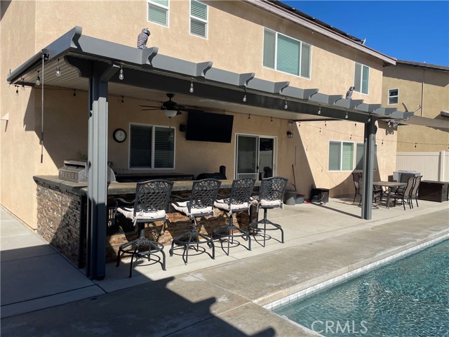 MOVE IN READY! NO HOA! Stunning turn key 2-story pool home on a quiet cul-de-sac. Bright, open entryway leads to a spacious main level with new tile flooring. Gourmet kitchen features a large island, abundant cabinets, and walk-in pantry with built-in beverage fridge, opening to dining and living areas with easy backyard access for entertaining. Downstairs bedroom and full bath, plus bonus room-perfect for a home office or play area. Upstairs features a bright loft perfect for a family room or study including a large closet for ample storage, convenient laundry room and a spacious primary suite with ensuite bath. The backyard is a true resort-style oasis, boasting a custom pool (installed in 2021) with built-in stools, baja step, jacuzzi, LED lighting, and WiFi-controlled water features, a built-in BBQ, and freshly poured concrete in both front and back for low-maintenance outdoor living. Additional highlights include an oversized 3-car garage wired for 220, RV/trailer parking potential, and a prime location close to freeways, shopping centers, and SilverLakes Sports Park. Professional photos will be posted soon!