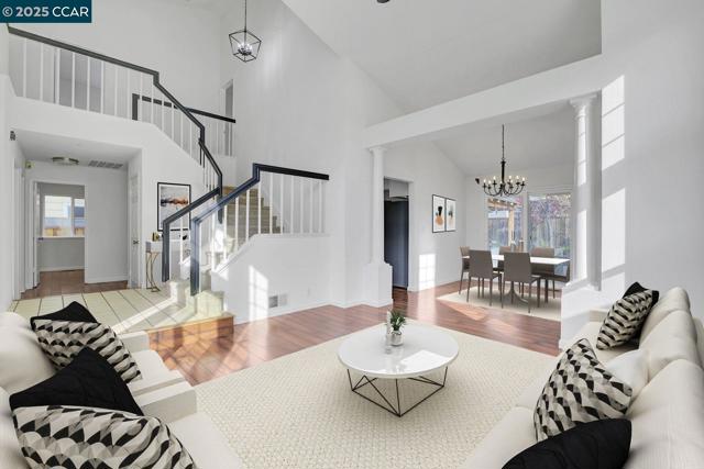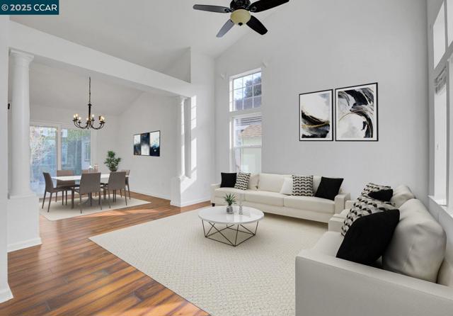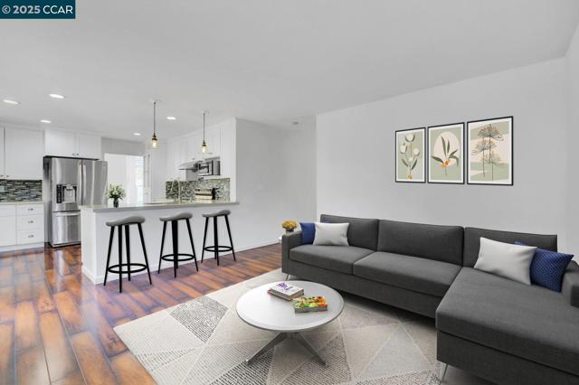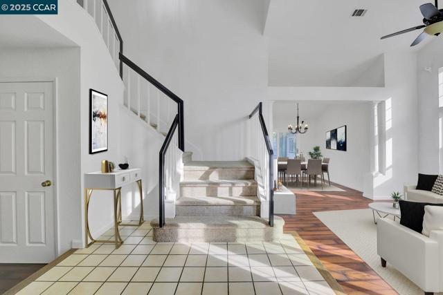 Welcome to a stunning freshly updated 4bed/3bathroom home that has everything buyers are looking for. Fresh paint and a modern, open layout greet you from the moment you enter the living and formal dining rooms which provides an abundant light that leaves you with a clean, neutral palette feel. The kitchen flows seamlessly into the family room, creating an inviting open-concept space ideal for everyday living and entertaining. Updated stainless steel appliances, contemporary cabinets, and durable countertops enhance both form and function. Relax in the large family room, featuring a cozy fireplace—perfect for chilly evenings and cozy gatherings. A convenient ground-floor bedroom with an updated full bathroom adds versatility for guests, or home office. Walk up the large open staircase with newly installed carpet that leads into two well-sized bedrooms connected by a modern Jack-and-Jill style bathroom, offering practical, shared-use layout. Primary bedroom offers high ceiling, opening to a large primary bath that offers a calm resort-like feel. Enjoy a garden-inspired backyard ideal for relaxing or entertaining. Shed offers water & electricity, perfect for an outdoor kitchen, workshop, or extra storage. Excellent commuter location-short drive to BART/Hwy4 & local amenities.