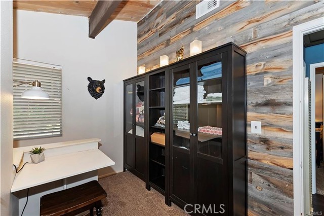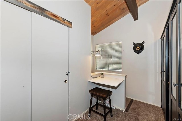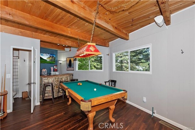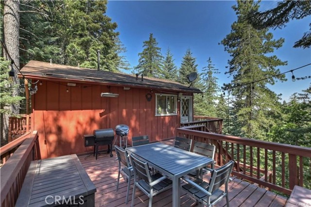 Treehouse-like atmosphere with peek-a-boo views of Lake Arrowhead. The main level features a welcoming kitchen, dining, and great room area, along with a comfortable bedroom that has its own deck—perfect for morning coffee or evening relaxation. A full bath and a cozy nook for office space are also on this level. Downstairs includes a second bedroom, a 3/4 bath, a laundry closet, and a versatile game room with a dry bar—ideal for family game nights or entertaining friends. This property comes fully furnished, from cozy living room seating to comfortable beds, and from kitchen essentials to outdoor furniture. Recent upgrades ensure comfort and reliability, including a full house generator, new plumbing pipes, an indoor water shut-off valve, an updated electrical panel, fresh flooring throughout, and a new central heating system. The adjacent lot enhances your sense of privacy and provides extra outdoor space. While the steep slope and stairs offer a challenge, they also provide unparalleled privacy and stunning forest views. With Lake Arrowhead's growing popularity among Southern California residents seeking weekend escapes