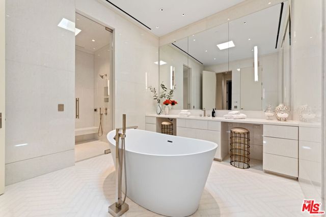 Introducing SKY 455, the pinnacle of penthouse living in Beverly Hills. This rare, full-floor residence offers unmatched privacy, luxury, and exclusivity. Perched atop a five-residence building, this architectural masterpiece by Fields & Deveraux represents a unique opportunity in Los Angeles' highly competitive luxury condo market. A private elevator opens to the sun-drenched architecture of Richard Hallberg, where soaring 10-to-12-foot ceilings and gallery-like spaces provide an exquisite setting for art collectors and grand-scale entertainers alike. The open living and dining areas flow seamlessly, blending sophistication with comfort for both intimate and large gatherings. A true highlight of the home is the expansive 975-square-foot private rooftop deck, boasting panoramic views of the Hollywood Hills and San Gabriel Mountains. With the potential to reinstate a private plunge pool, this outdoor retreat transforms the penthouse into a true sanctuary in the sky. Featuring 3 bedrooms and 6 bathrooms, this home is outfitted with the finest materials and finishes, including Miele and Sub-Zero appliances, white oak cabinetry, handmade glass sconces, custom walk-in closets, a Lutron lighting system, and motorized shades. Four side-by-side parking spaces complete this exceptional offering. With no other move-in-ready condominiums of this size and caliber currently available in Beverly Hills, SKY 455 delivers a rare blend of scale, style, and exclusivity in the heart of Beverly Hills.