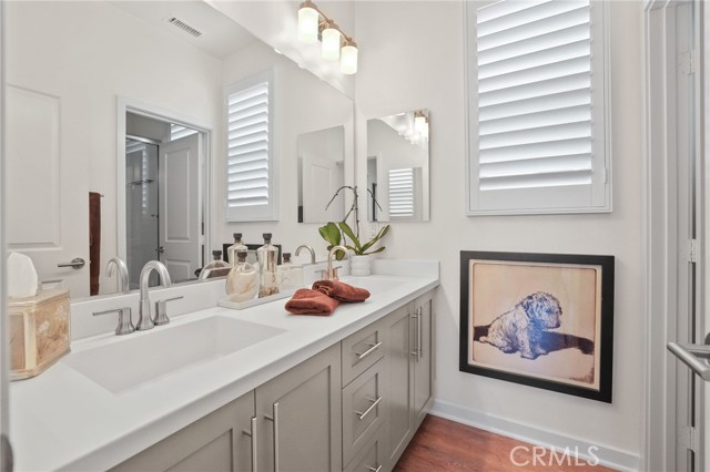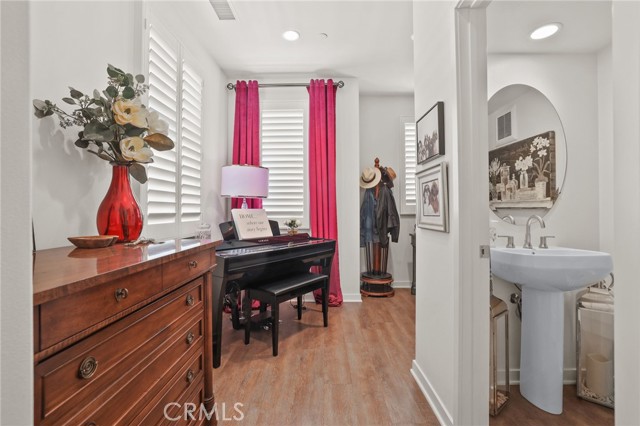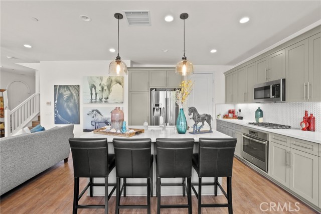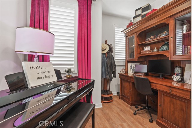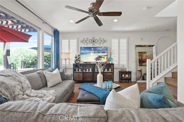 VIEW! VIEW! VIEW! Stunning Fully Upgraded Single Family Home Featuring Private VIEW Lot, and Lush Tranquil Backyard Oasis! Located in Baker Ranch and situated on a Premier Lot, this Gorgeous 3 Bedroom +Office Home is Designed to Embrace California's Indoor, Outdoor Living! Upon entry you notice the Upgraded Wood Look Luxury Vinyl Flooring running throughout the entire home and leading you to the Spacious and Open Concept Great Room. Overlooking Expansive Views of the Backyard, Mountains, Hills, Greenbelt and Sunsets. The Spacious Great Room features Custom Window Coverings, Ceiling Fan, Designer Interior Paint and an abundance of Natural Light. The Gourmet Kitchen includes Stainless Steel Appliances, Stylish Quartz Counter Tops, Designer Pendant Lights, Upgraded Custom Tile Backsplash, and Ample Dining Space. The Kitchen provides Direct Access to your Private Backyard Oasis featuring an Expansive Patio and Walkway, Extended Overhead Trellis, Low Maintenance Landscaping, Custom Seating Area, Tranquil Water Feature, Fireplace and Supreme Privacy with Extraordinary Sunset Views! The Highly Desirable Downstairs Office and Half Bath round out the first floor. Upstairs you will find all 3 Spacious Bedrooms, 2 Bathrooms and the Convenient Upstairs Laundry Room. Step Into the Elegant and Open Primary Suite with a Light and Bright Interior, Plantation Shutters, Upgraded Wood Flooring, Designer Paint, and Relaxing Lush Sunset Views from Every Window! Start Your New Wellness Routine in the Spa Like Primary Bathroom featuring a Spacious Walk-In Closet, Dual Vanities, Beautiful Cabinets, Designer Tile Flooring and Restorative Walk-In Glass Shower. Additional Upgrades for the Modern Day Buyer Include Tankless Water Heater and Multiple Designer Fixtures Throughout the Home. Baker Ranch offers top of the line amenities including 3 Swimming Pools, 8 Parks, Hiking and Biking Trails, Tennis Courts, Beach Volleyball, Basketball Courts, Dog Park, Clubhouse and More. No Mello Roos and Low HOA. Beautiful Home..Do not wait on this one!