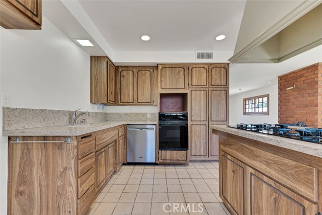 Nestled on a generous, over 8000 sq ft corner lot in the heart of Granada Hills, this inviting 4-bedroom, 2-bath, 1,570 sq ft Southern California rambler blends timeless charm with modern comfort. Wonderful vintage façade, verdant lawn, curving drive with brick ribbons, and covered brick front porch create great curb appeal. Fresh paint, smooth ceilings, recessed lighting, and an open floorplan create a warm and airy feel from the moment you enter through the front door. The spacious living room features wood flooring, a classic brick fireplace, a large picture window. It is fully open to the adjoining dining are, with French doors that open to the covered patio, perfect for effortless indoor/outdoor living. The space flows seamlessly into the well-appointed kitchen, offering tile flooring, quartz countertops, an convenient central island and built-in appliances. The attached utility room offers laundry facilities and direct yard access. Down the hall are all the bedrooms, including a spacious primary suite with an en-suite full bath with a walk-in bath. Three additional good-sized bedrooms share access to a ¾ hall bath, providing flexibility for family living, room for guests, office space, or hobbies. The backyard is ideal for entertaining or relaxation, featuring a covered patio, lawn area, mature hillside landscaping, a large shade tree, and a storage shed. An attached 2-car garage as well as RV access with a dedicated concrete pad adds convenience. Well situated near highly rated schools like Robert Frost Middle and Granada Hills Charter, shopping, dining, parks, and major freeways, this charming, well-cared-for residence offers comfort, functionality, and fantastic potential in one of Granada Hills’ most desirable neighborhoods. Don’t miss out on this one!