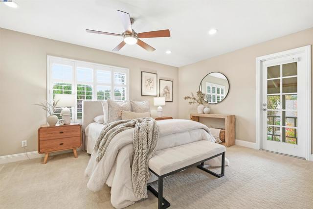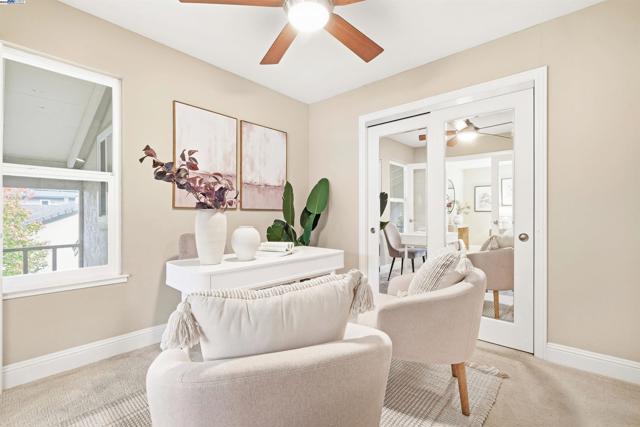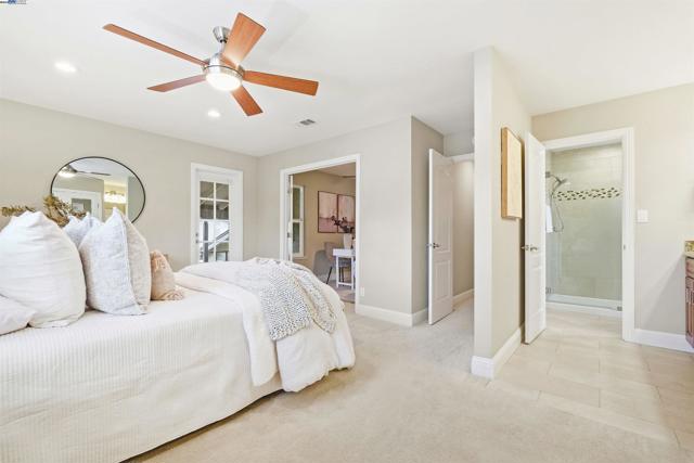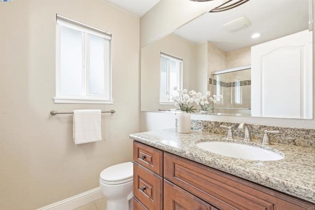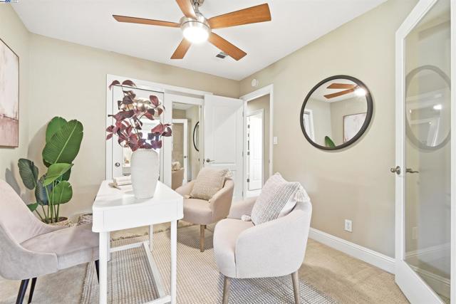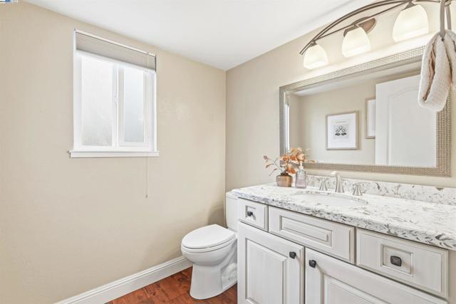 Nestled in the highly desirable Parkmont neighborhood, this gorgeous home features an ideal floor plan with stylish upgrades throughout. The beautifully updated kitchen boasts custom cabinets, quartz countertops, handmade tile backsplash, and high-end stainless steel appliances including a gas range. The inviting family room is highlighted by built-in cabinetry and a pellet fireplace insert. Additional features include rich amber Brazilian acacia hardwood floors, dual pane windows, plantation shutters, recessed lighting, copper plumbing, and central A/C. Upstairs, the bedrooms are spacious and include built-in closet organizers, while the updated hall bath features a custom granite-topped counter. The primary retreat offers access to a private deck, an attached office with a large closet, and a private bath showcasing a custom granite dual-sink vanity and stall shower. The finished backyard is perfect for entertaining with a large stamped concrete patio and a serene water feature. All of this in an unbeatable central Fremont location—walking distance to BART and Shinn Historical Park & Arboretum, close to top-rated schools, and with quick access to 880, 680, Niles Canyon, Dumbarton Bridge, and the Centerville Amtrak station. Move-in ready, this Parkmont gem is not to be missed!