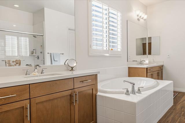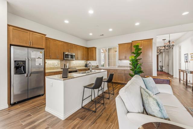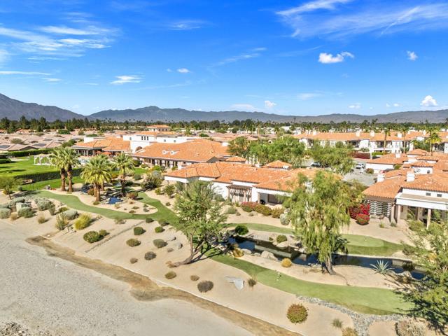 Welcome to Villa Portofino in Palm Desert -- the premier 55-and-better community located in the heart of the Coachella Valley. This exceptional residence offers wonderful mountain views in a quiet, private setting, perfectly blending comfort, style, and convenience. This Positano/Celano Floor Plan has been thoughtfully appointed and shows like new. The interior features porcelain wood-look tile flooring throughout, rich maple cabinetry, and granite and quartz countertops, creating a warm yet modern aesthetic. Lightly lived in, the home feels fresh, clean, and incredibly well-maintained. The open great-room layout is ideal for entertaining or everyday relaxation, complete with sweeping views of the snow-capped mountains. The private back patio is surrounded by mature desert landscaping, offering a peaceful spot to enjoy sunrise coffee or an evening glass of wine. With three bedrooms and two-and-a-half bathrooms, there is ample space for visiting family and friends. The private two-car garage features epoxy-coated floors and built-in storage, and owned solar keeps energy costs exceptionally low. Just steps away is the spectacular 30,000 sq. ft. Clubhouse, offering every amenity imaginable:two restaurants, resort-style pool and spa, full fitness center, yoga studio, movie theater, game room with poker and billiards, and multiple lounges equipped with large-screen TVs. Monthly social events make it easy to stay as active and connected as you choose. Villa Portofino's prime central location puts you minutes from The Shops on El Paseo, The McCallum Theatre, world-class dining, upscale grocery options, and the renowned Eisenhower Medical Center. The HOA covers nearly everything, giving you a true lock-and-leave lifestyle. Don't miss the opportunity to experience this beautiful home -- schedule your private showing today.