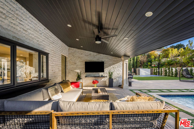 Breathtaking renovated estate offering the finest luxury experience and located within the highly desired Mulwood neighborhood of Calabasas. Bright open floor exuding tons of natural light and modern designer finishes throughout perfect to enjoy the California lifestyle. Sleek brand new chef's kitchen with custom cabinetry, quartz countertops and SubZero/Wolf appliances. This stunning home features over 4,400 sqft of living space and 6 six spacious bedrooms. Large glass pocket doors open to the backyard which is a true entertainers paradise featuring a new poo/spa, BBQ center, fire pit area, large covered patio, outdoor bath/shower, sport court and tons of grassy space. Oversized master suite with balcony overlooking to the yard, walk-in closet and indulging master bathroom with sauna. Additional amenities include home gym, security cameras and surround sound system. Located just minutes away from upscale boutique/shops, The Commons, and award winning LVUSD schools.
