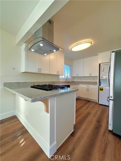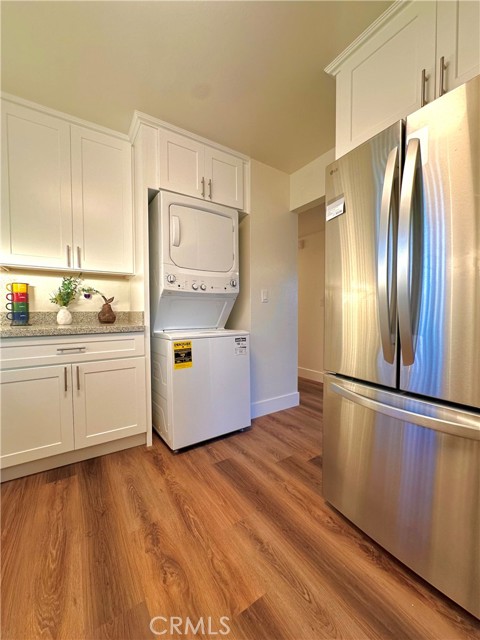 Welcome to the City of Lomita. This garage apartment unit features laminate plank flooring (living room, kitchen, bedrooms), Tile flooring (bathrooms), Granite counters, Stainless Steel Gas stove, Stainless Steel Dishwasher, Stainless Steel Refrigerator, Stackable washer & dryer, Blinds, Ceiling Fans, Private enclosed patio, Laundry Hook-ups (for stackable washer & dryer), Two enclosed garages.