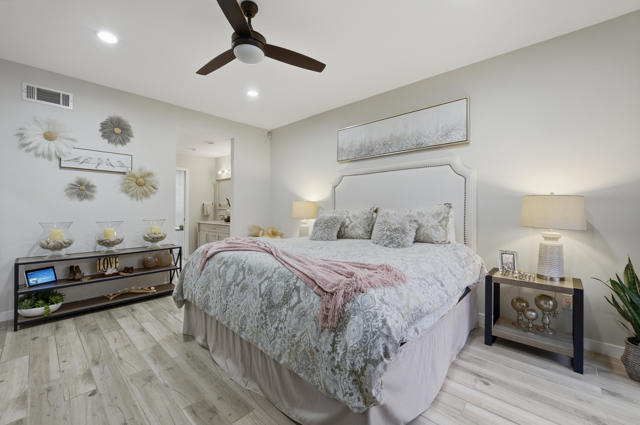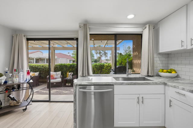 Beautifully remodeled and move-in ready, this stylish 3-bedroom, 2-bathroom condo is located in the highly sought-after Casablanca community in the heart of Palm Desert. Light, bright and thoughtfully updated throughout, the home features an open-concept layout with modern finishes, sleek tile flooring throughout and abundant natural light. The modern kitchen has newly installed stone countertops with a waterfall edge, tile backsplash, stainless steel appliances and flows seamlessly into the open living and dining areas, perfect for everyday comfort or entertaining. The spacious primary suite feels like a private retreat, offering a spa-like bathroom, designer tile work, freestanding tub, a large walk-in closet and private sitting patio. Two guest bedrooms and a second fully remodeled bathroom provide flexibility for visitors, a home office, or personal hobbies. Enjoy beautiful sunsets on the rear patio with sweeping mountain views. Plus, an attached 2-car garage. Enjoy Palm Desert living at its best with access to 4 pools and spas, 2 tennis courts, and 4 pickleball courts within the gated Casablanca community--plus easy proximity to shopping, dining, golf, and world-class desert amenities. A fresh, modern home in a prime location--this one is ready to enjoy from day one and an excellent value!