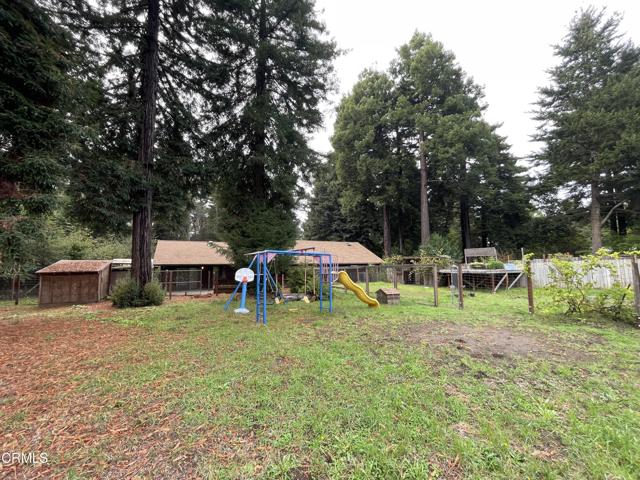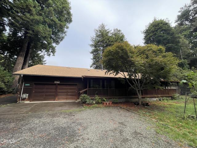 Quality home and property with more space and potential than first meets the eye. 1435 square feet on the ground floor and 624 square feet in a finished attic space with 3-rooms. Plus, a large, covered, front porch, and an expansive, backyard deck that's accessed from the dining room sliding glass door. Perfect for BBQs and outdoor gatherings. Put this home on your list to see in-person! Pictures do not convey all the positives here. Located between Fort Bragg and Mendocino on a private, level, 1 acre parcel, it's fenced and crossed-fenced with fruit trees, garden space, pets, chickens, play and BBQ areas. Connections for an above-ground swimming pool are still in place. Roomy home interior, high ceilings in the living area, and finished attic rooms for expanded living space. Open-plan dining and kitchen. Lots of counter space and storage, including a large room with natural light adjacent to the dining area for a walk-in pantry, office, or playroom. Detached converted garage at the rear of the property has ample space for vehicles/workshop around it and/or possibly an ADU if permitted. 2-RV hook-ups. Wiring for an on-demand generator in place and ready for connection. 2-wells on the property. Multiple water storage tanks. Amazing Redwood groves create a peaceful and parklike setting.
