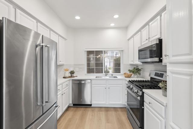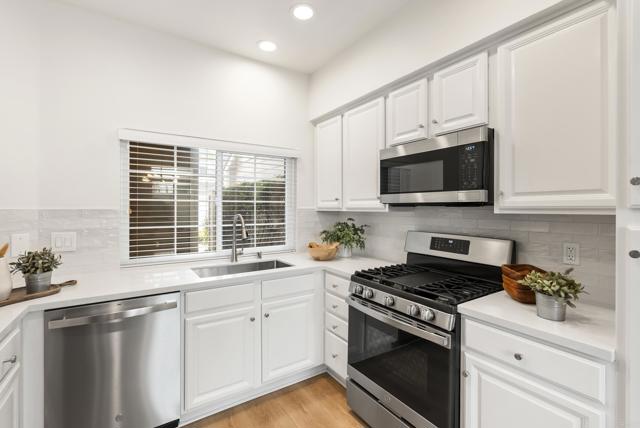 OH canceled! Welcome home to this stunning move-in ready townhome that perfectly combines modern updates, style, and convenience—all in the community of Cambia, one of Carmel Valley’s most desirable neighborhoods west of El Camino Real. Step inside to discover beautiful wide-plank flooring throughout and an inviting double-height living room ceiling that fills the space with natural light and a sense of openness. The newly renovated kitchen features sleek quartz countertops, a large stainless steel sink, and updated finishes that make cooking and entertaining a delight. Upstairs, you’ll find 2 comfortable bedrooms and beautifully updated bathrooms. Recent updates include new linen cabinet upstairs, new windows and blinds throughout, and new kitchen appliances as well as new washer and dryer. The primary bedroom enjoys its own ensuite bath and a large walk in closet. Outside, a charming private yard offers the perfect place to relax, garden, or enjoy morning coffee. The home also includes a large attached two-car garage with plenty of storage space. Located just minutes from One Paseo and Del Mar Highlands Town Center, you’ll have quick access to trendy restaurants, boutiques, fitness studios, and everyday conveniences. Commuting is easy with Highway 5 nearby, and the community amenities—including a pool, jacuzzi, and tennis court—make every day feel like a resort getaway.